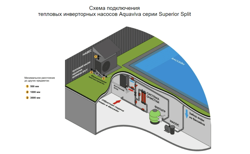 С тепловым насосом Aquaviva серии Superior Split вам больше не нужно «консервировать» его во время морозов. Сплит система позволяет включать и отключать нагрев без переживаний о перепадах температуры на улице, благодаря установке блока с теплообменником внутри помещения.