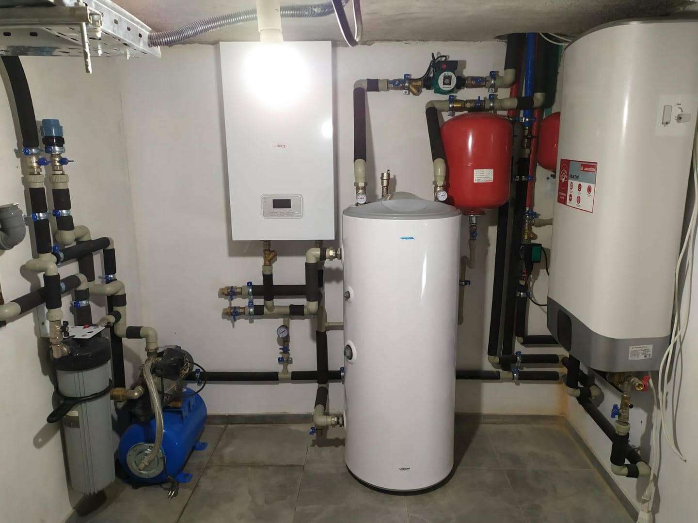 4. Интеграция с системой отопления: Были подключены все необходимые коммуникации для интеграции насоса с существующими теплыми полами и радиаторами.