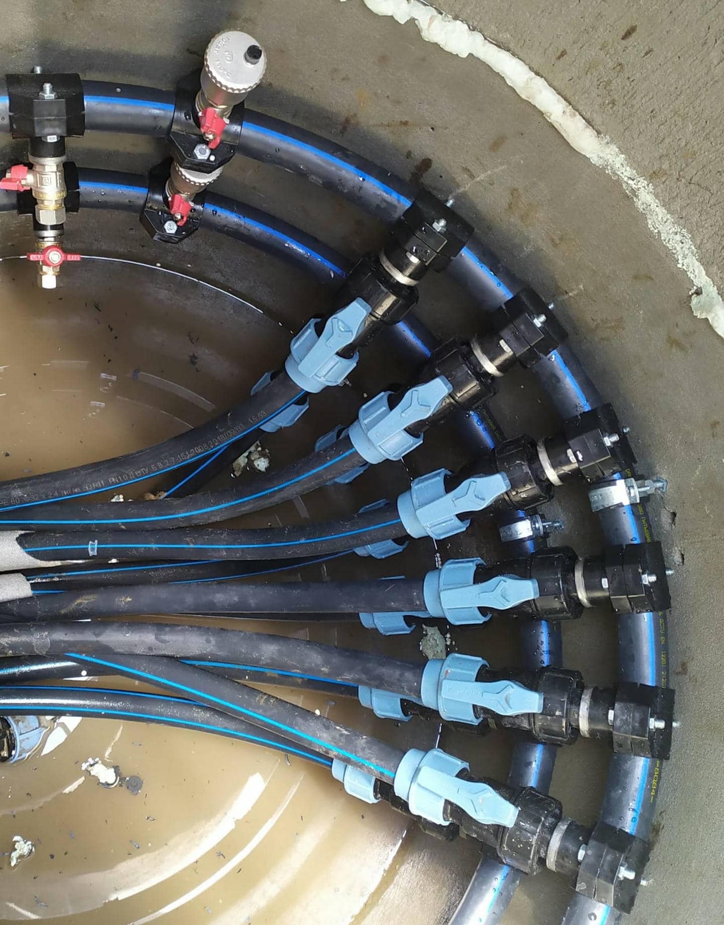 2. Прокладка геотермальных контуров: Для забора тепла из земли были проложены геотермальные контуры с использованием высококачественных труб. Эти контуры были заложены на глубину, обеспечивающую стабильную работу насоса в течение всего года.