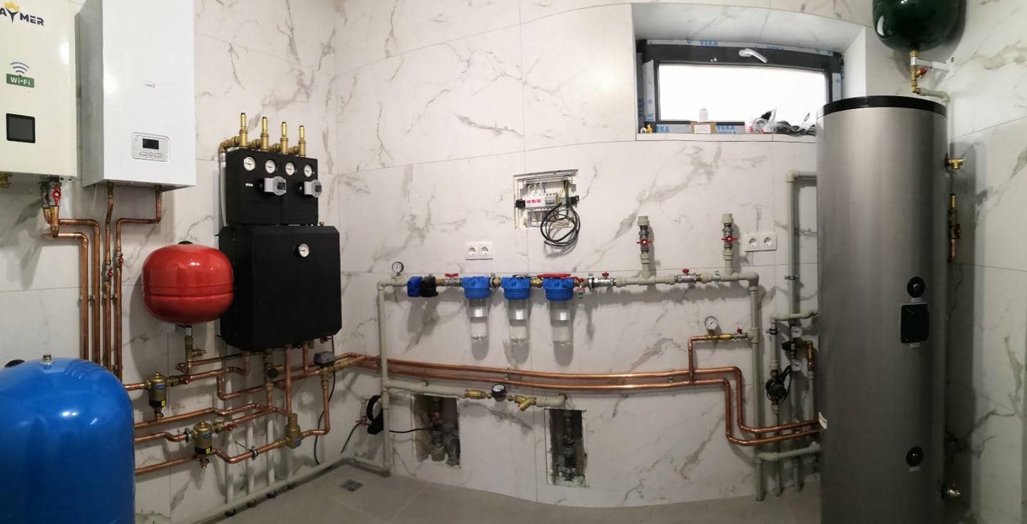 Система трубопроводов была подключена с учетом всех стандартов и с изоляцией соединений, чтобы избежать протекания теплоносителя, что может повредить оборудование.