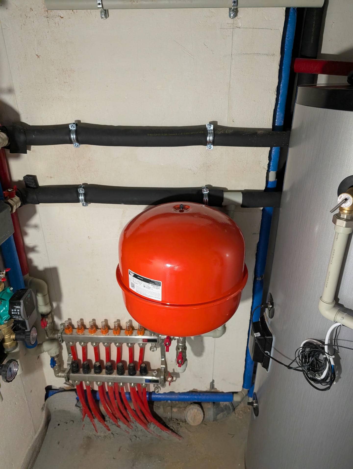 В процессе монтажа была организована подача и обратный поток к двум ключевым элементам системы — баку горячего водоснабжения и баку-накопителю. Такая схема позволяет равномерно распределять нагрузку и обеспечивает стабильную работу теплового насоса.