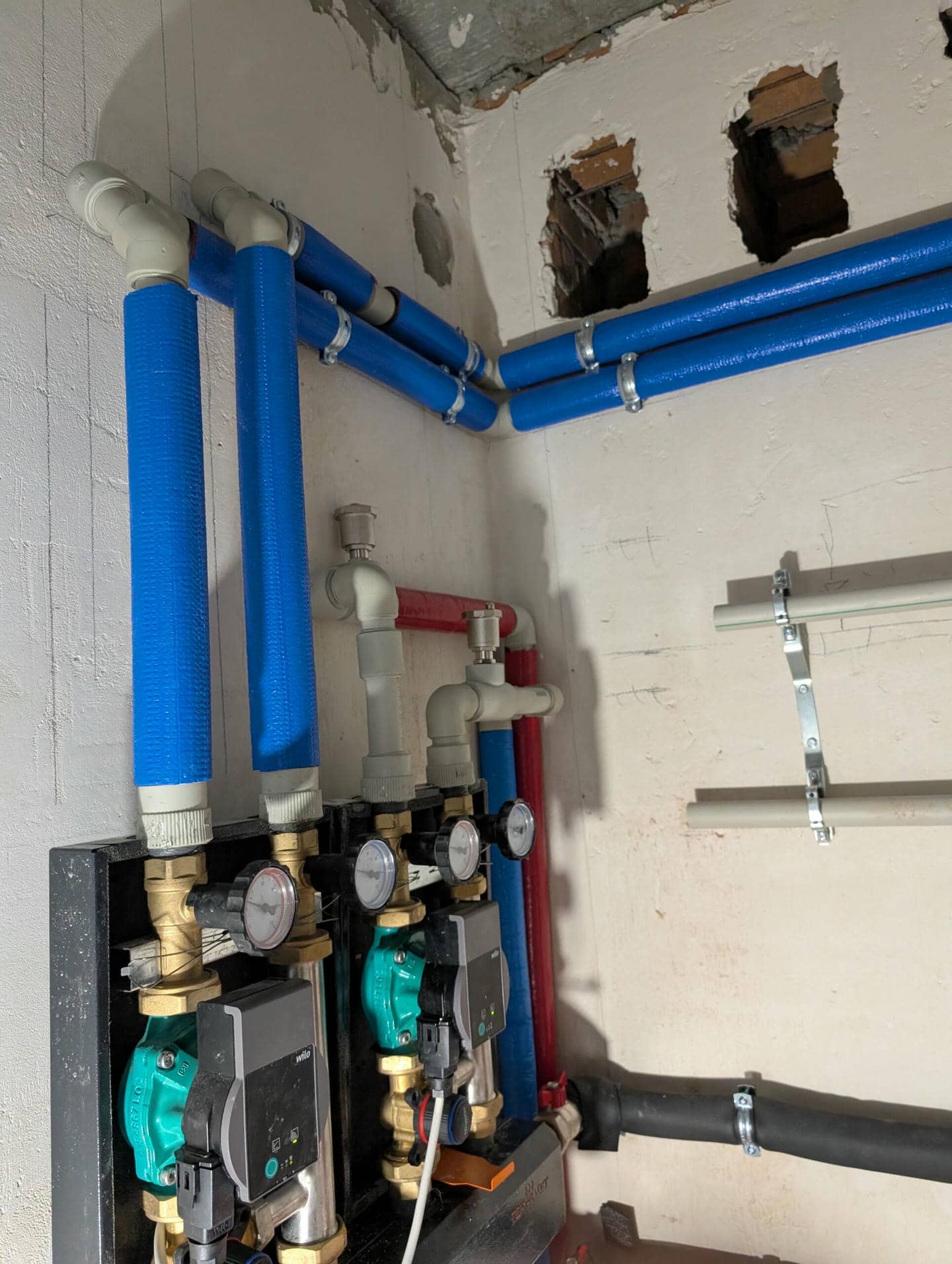 Монтажные работы выполнялись непосредственно заказчиком, однако процесс осуществлялся под постоянным руководством и техническим сопровождением наших инженеров. Это позволило реализовать качественное и аккуратное подключение, обеспечив правильный гидравлический баланс и удобство в дальнейшем обслуживании системы.