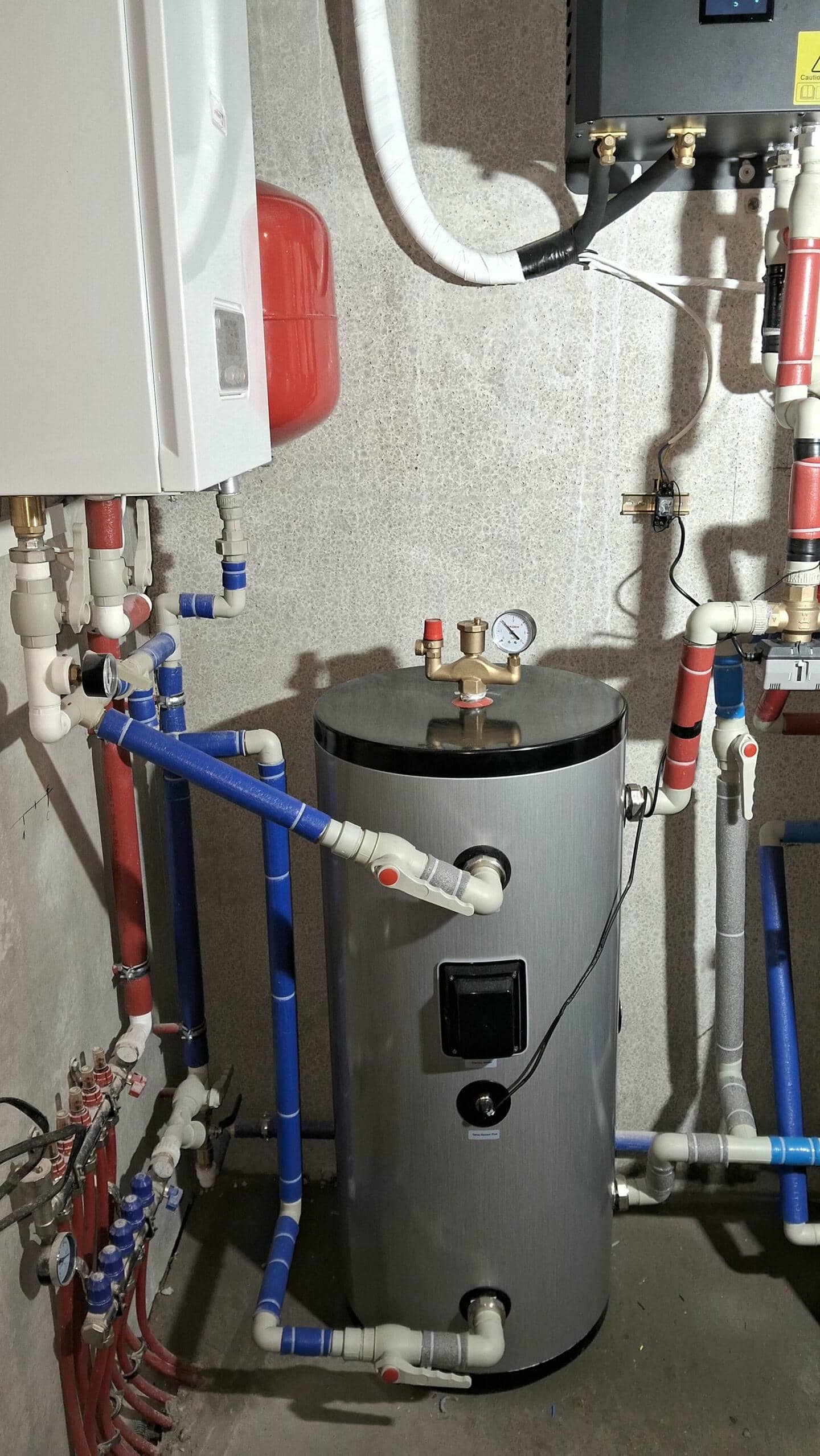 Для обеспечения горячего водоснабжения был дополнительно установлен бак косвенного нагрева Raymer DHWP150 объемом 150 литров. Его вместимости достаточно для удовлетворения бытовых потребностей семьи, обеспечивая комфорт и эффективность системы.