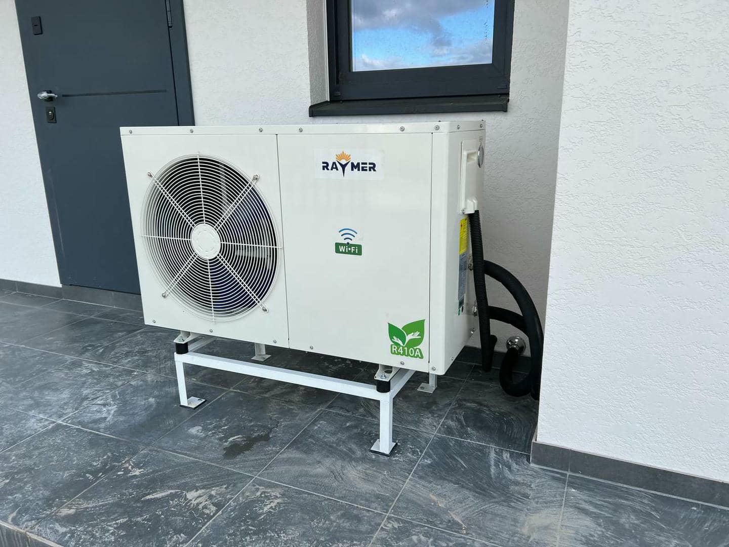 - Тепловой насос Raymer RAY-10MN: Это современное устройство, которое работает более удобно и чисто, чем твердотопливные тепловые насосы. Моноблок имеет простое и гибкое управление а также экологичный фреон R410a.