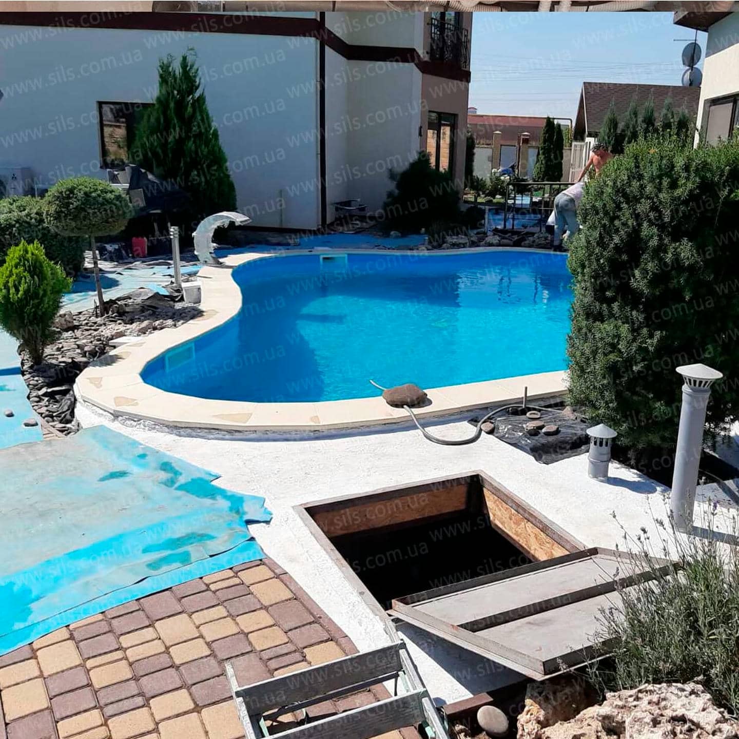 Для обеспечения комфортной температуры воды в открытом бассейне объемом 55 кубометров, расположенном в частном загородном доме в Запорожской области, была проведена следующая работа: