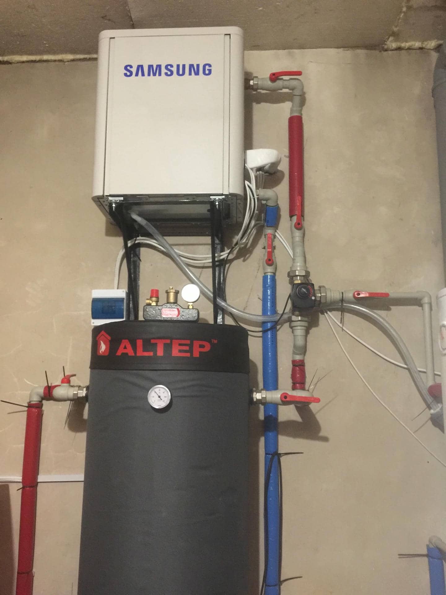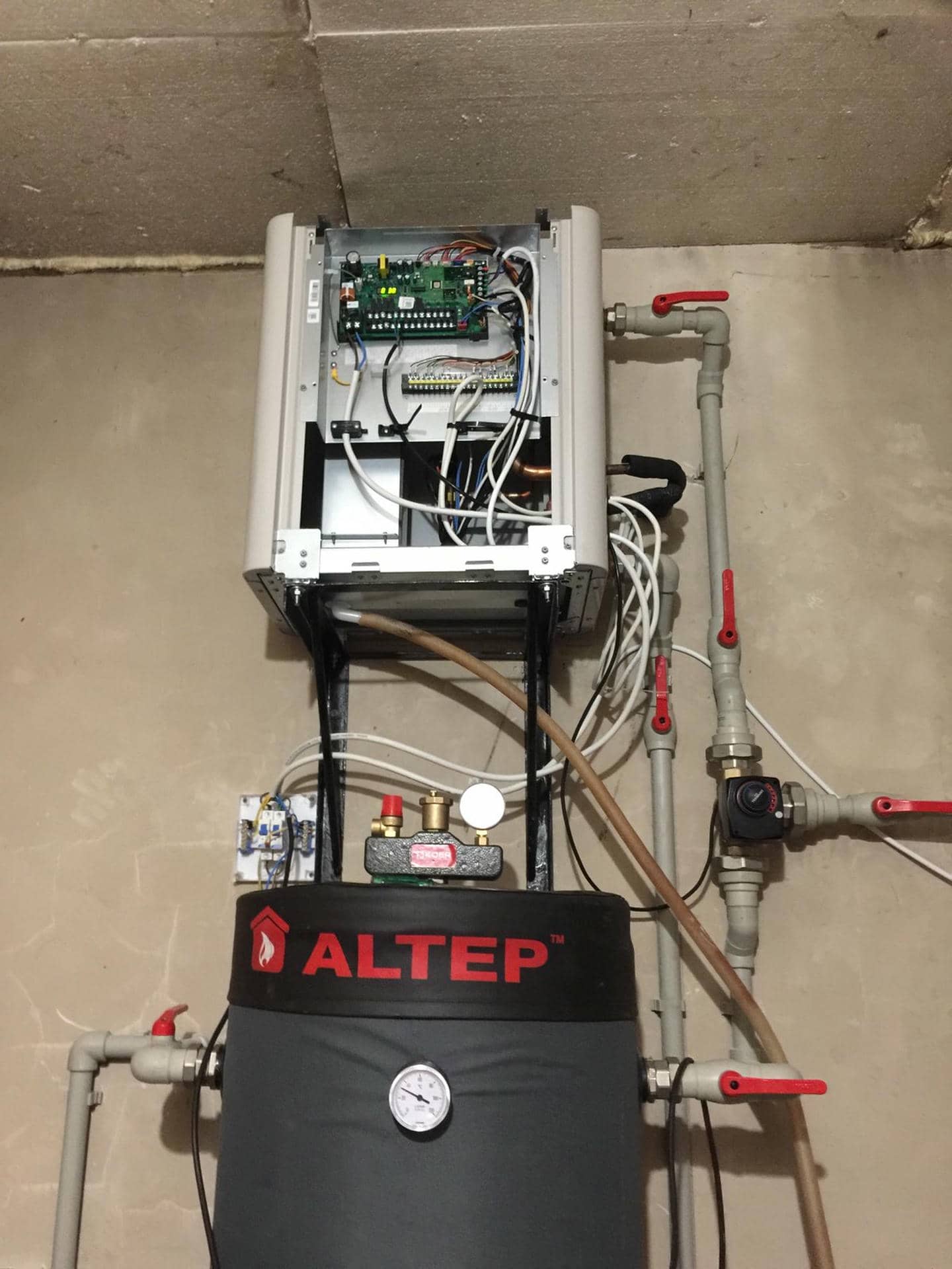 - Інтеграція з наявною системою: Новий тепловий насос був інтегрований з уже наявними елементами опалювальної системи, що дало змогу зберегти і поліпшити їхню ефективність. Додатково було встановлено бак Altep для підвищення загальної ефективності системи.