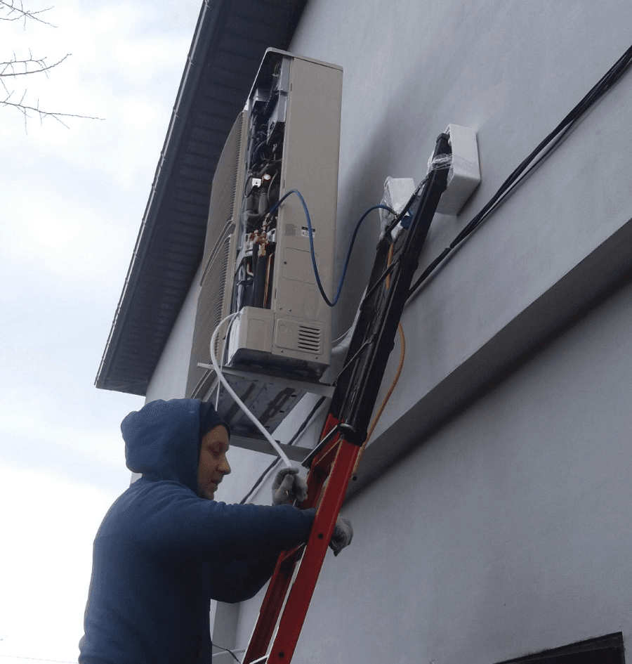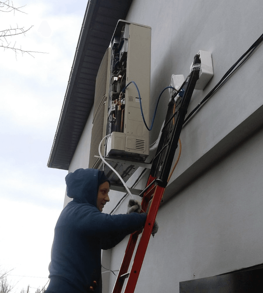 Монтаж та інсталяція: Роботи з монтажу включали встановлення зовнішнього блоку теплового насоса в оптимально обраному місці для максимальної ефективності роботи, а також інтеграцію внутрішнього блоку з системою опалення та гарячого водопостачання будинку. Було виконано інсталяцію бойлерної для нагріву води, що дало змогу повністю забезпечити будинок гарячою водою з використанням енергії теплового насоса.