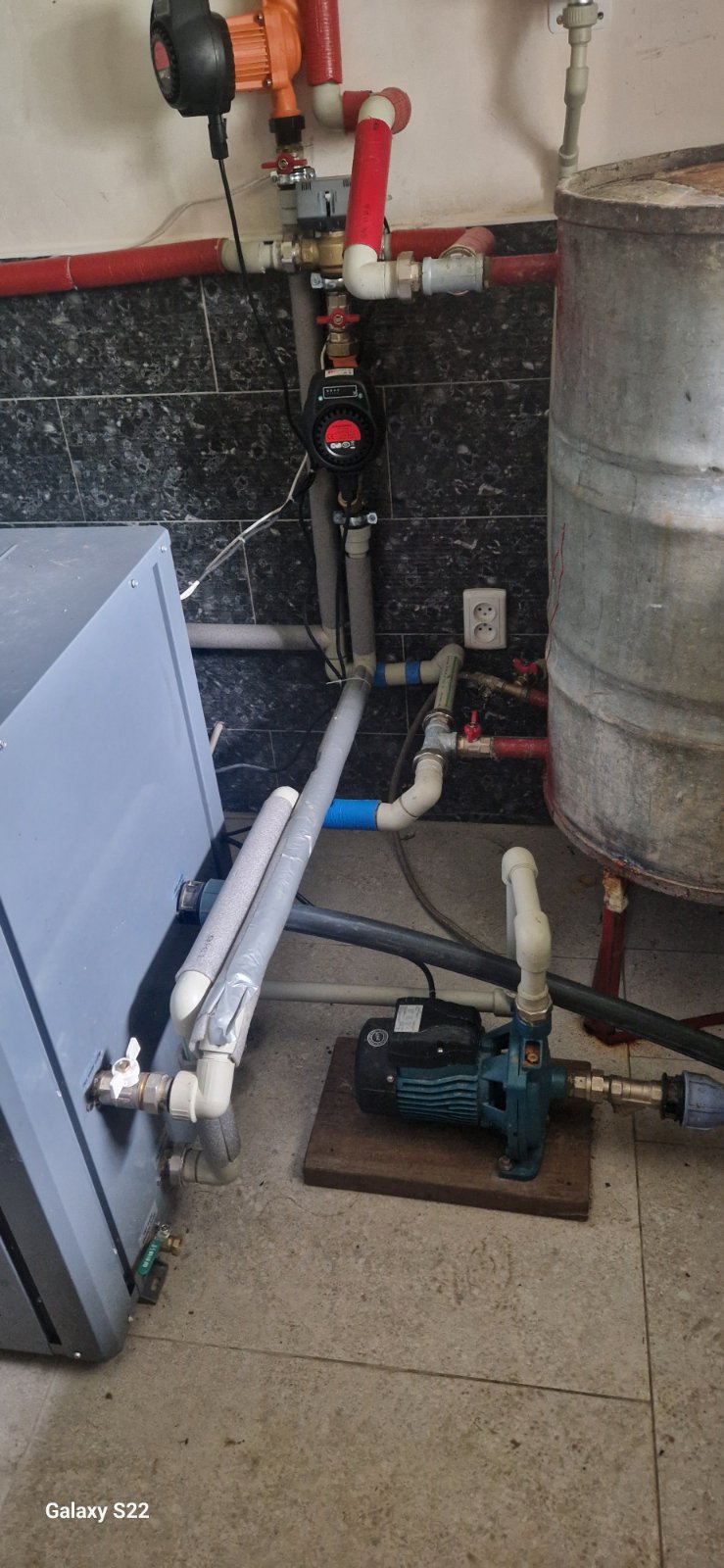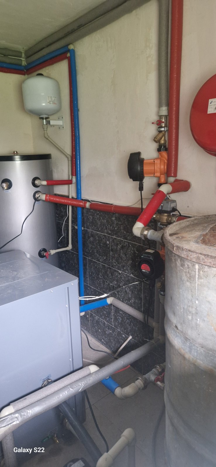 Наступним етапом було встановлення геотермального теплового насоса Raymer RAY-17WW. Це передбачало підключення насоса до існуючої системи опалення будинку, встановлення бака непрямого нагріву для ГВП та інтеграцію триходового клапана. Додатково був встановлений розширювальний бак для забезпечення стабільності тиску в системі.