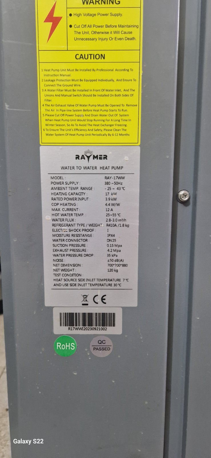 Теплова потужність Raymer RAY-17WW становить 17 кВт, що забезпечує ефективне опалення будинків площею до 200 кв.м. Завдяки інверторній технології насос автоматично регулює свою потужність залежно від потреб у теплі, що дозволяє значно знизити енергоспоживання. Коефіцієнт ефективності (COP) цього насоса може досягати 4, що означає, що на кожен кіловат спожитої електроенергії виробляється до 4 кіловат тепла.