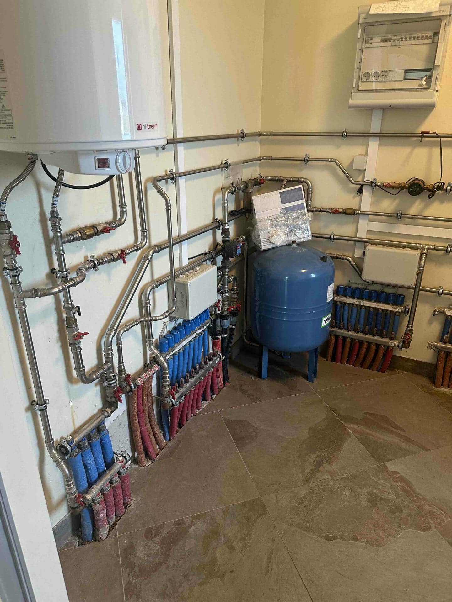 Насос було інтегровано в систему гарячого водопостачання та “теплої підлоги”, які вже були попередньо прокладені.