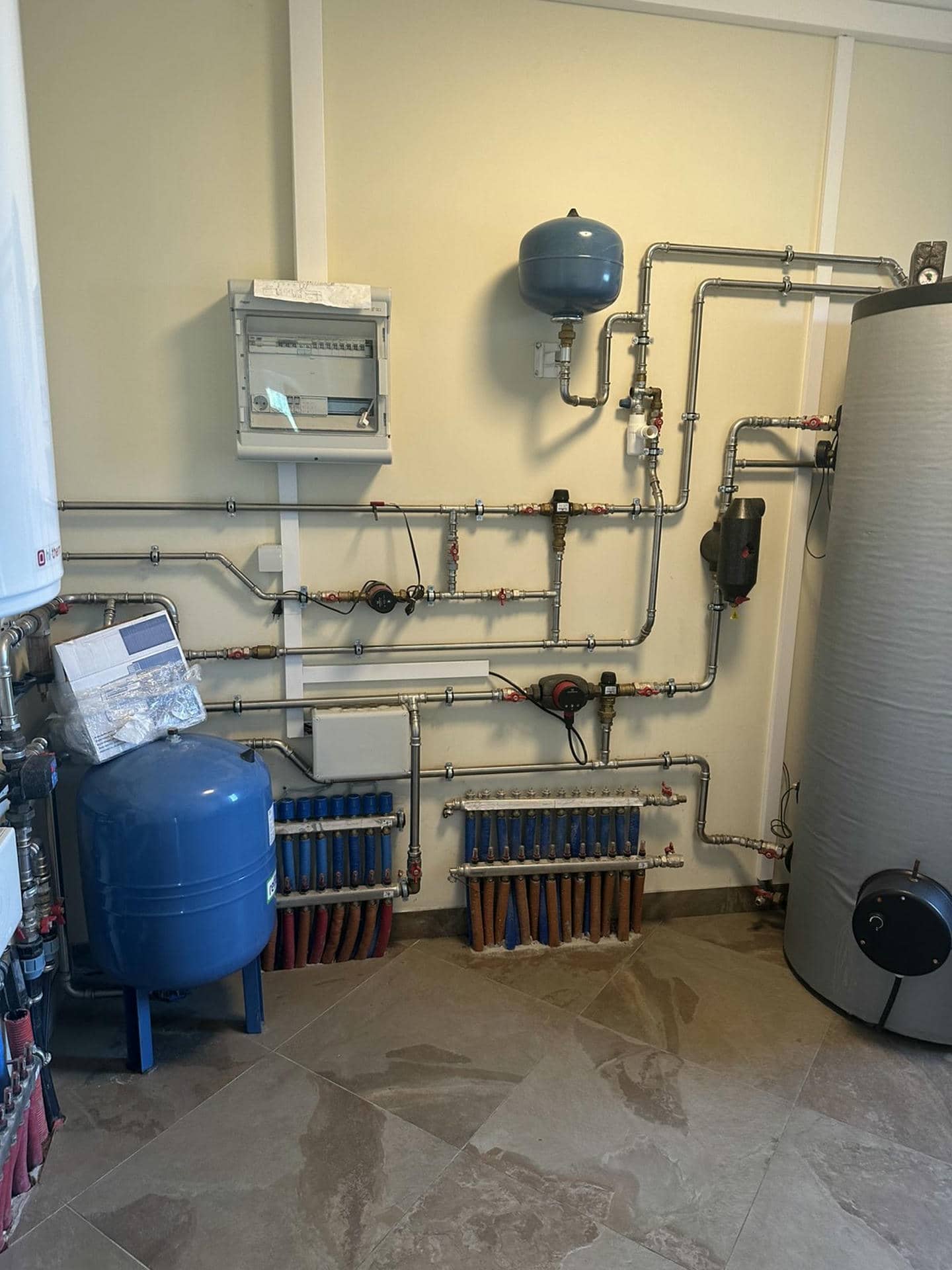 Насос було інтегровано в систему гарячого водопостачання та “теплої підлоги”, які вже були попередньо прокладені.