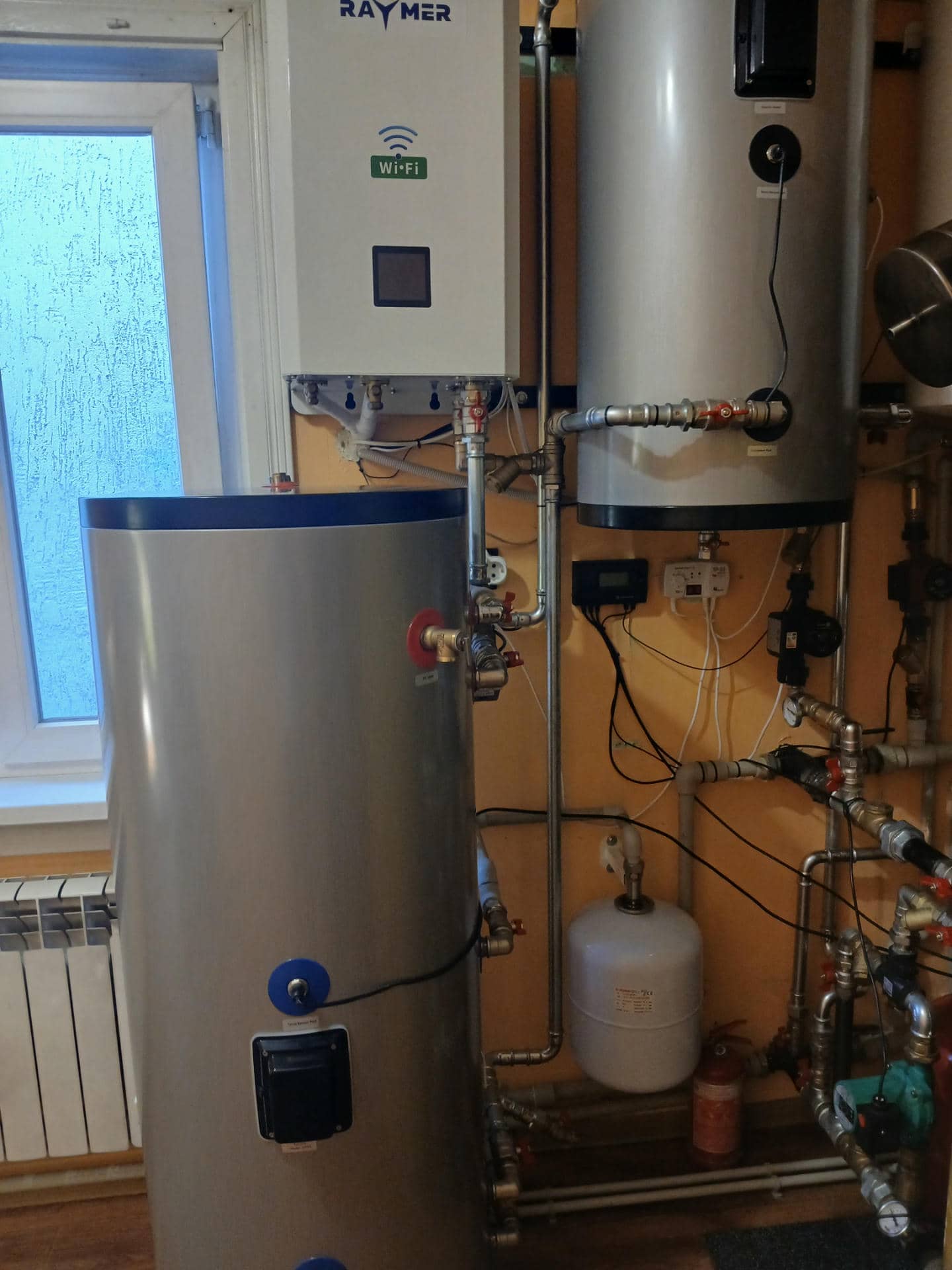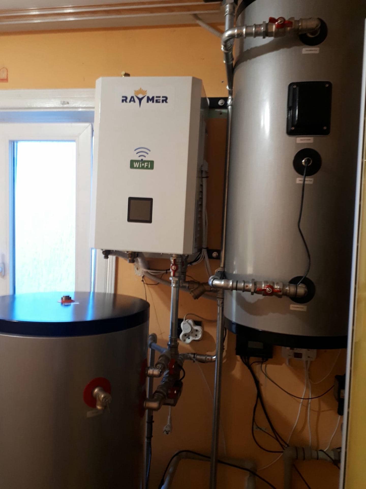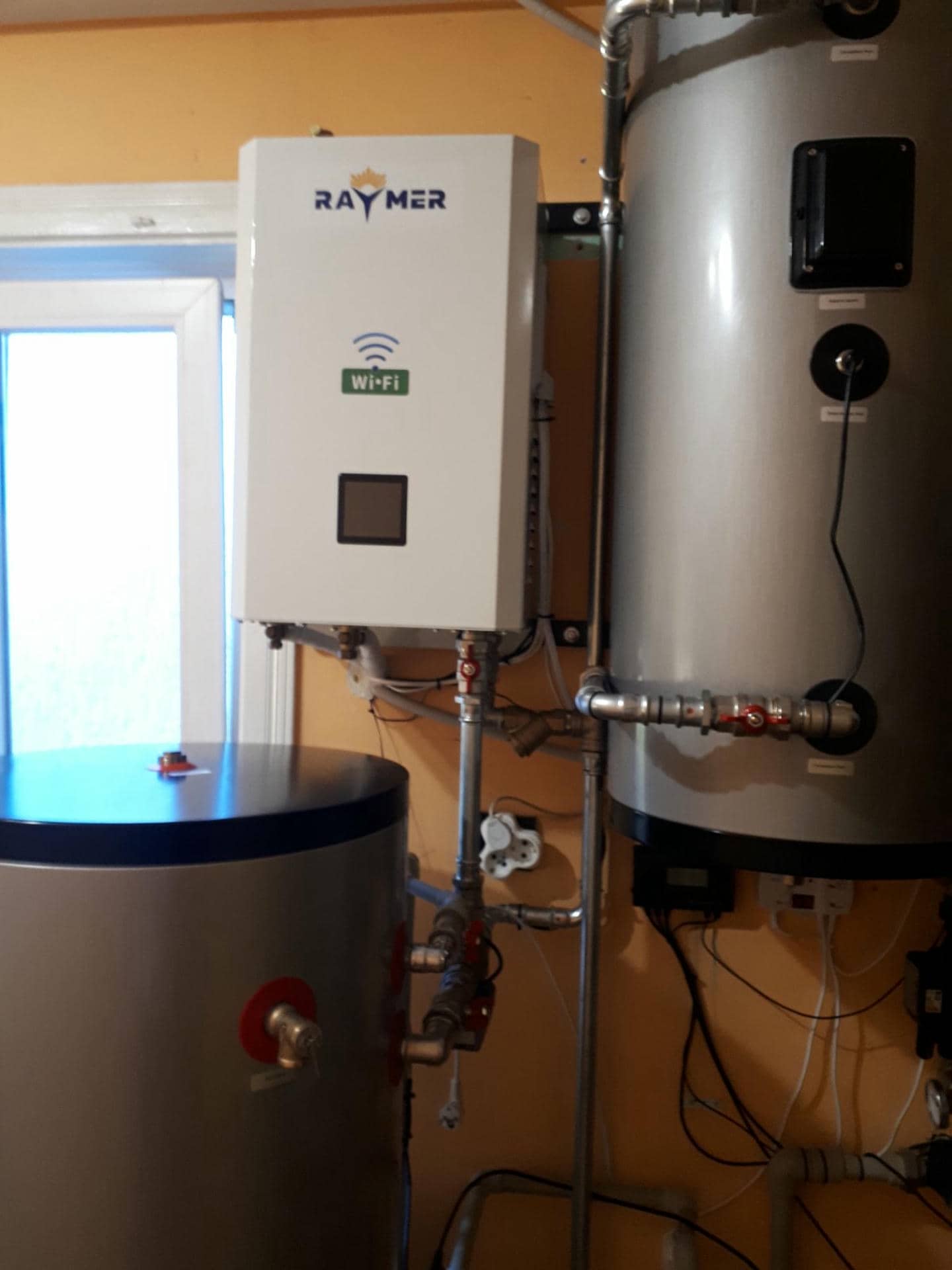 - Для гарячого водопостачання встановлено бак непрямого нагріву Raymer DHWP 200L, який забезпечує великий обсяг гарячої води для домашніх потреб.