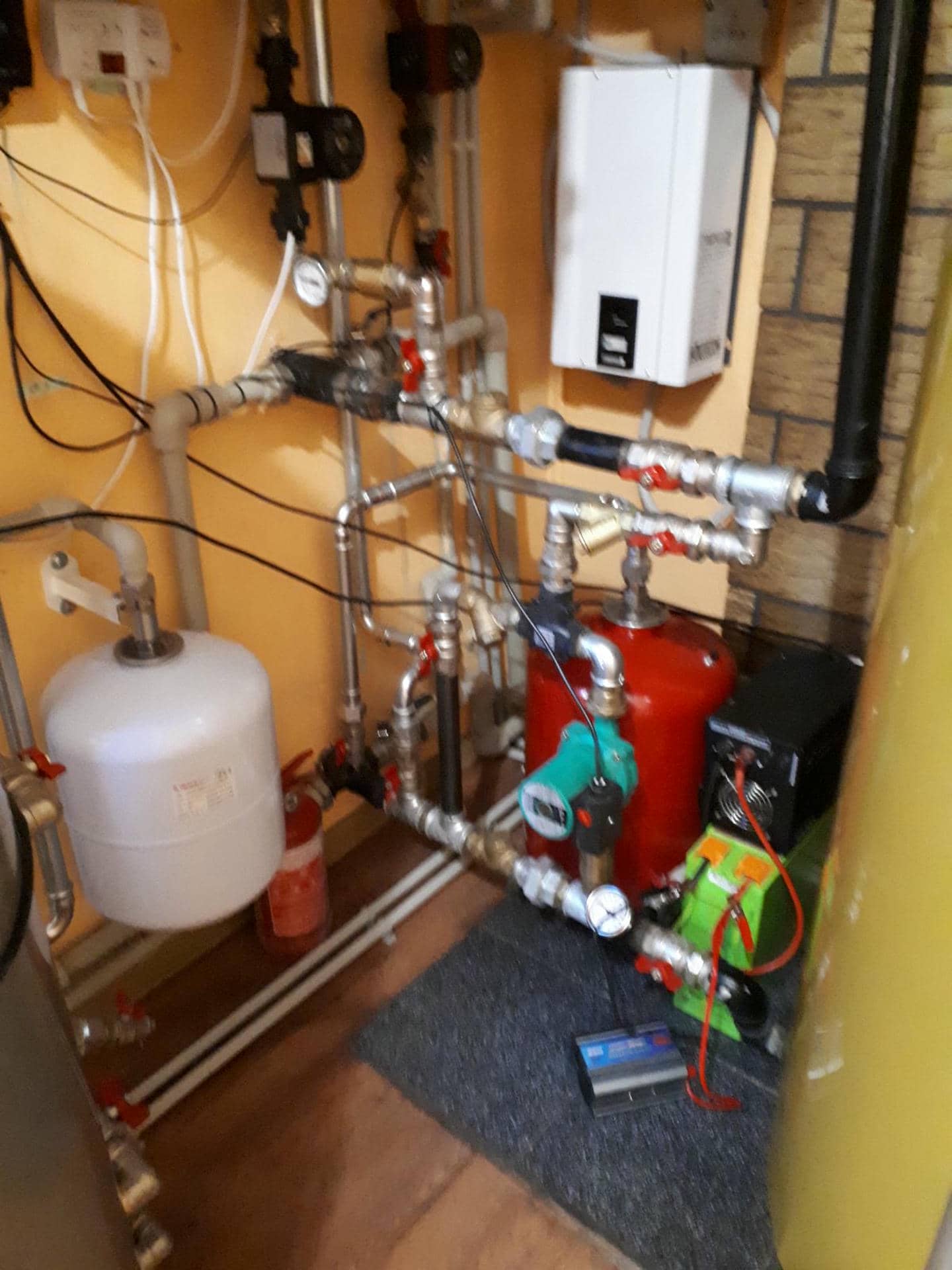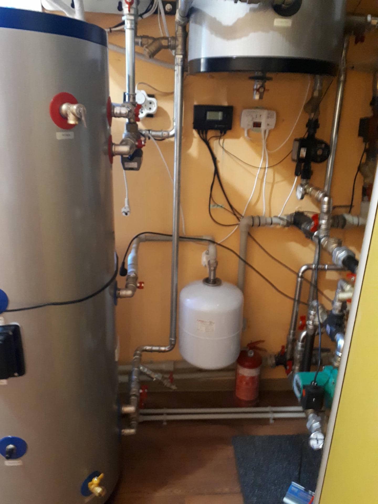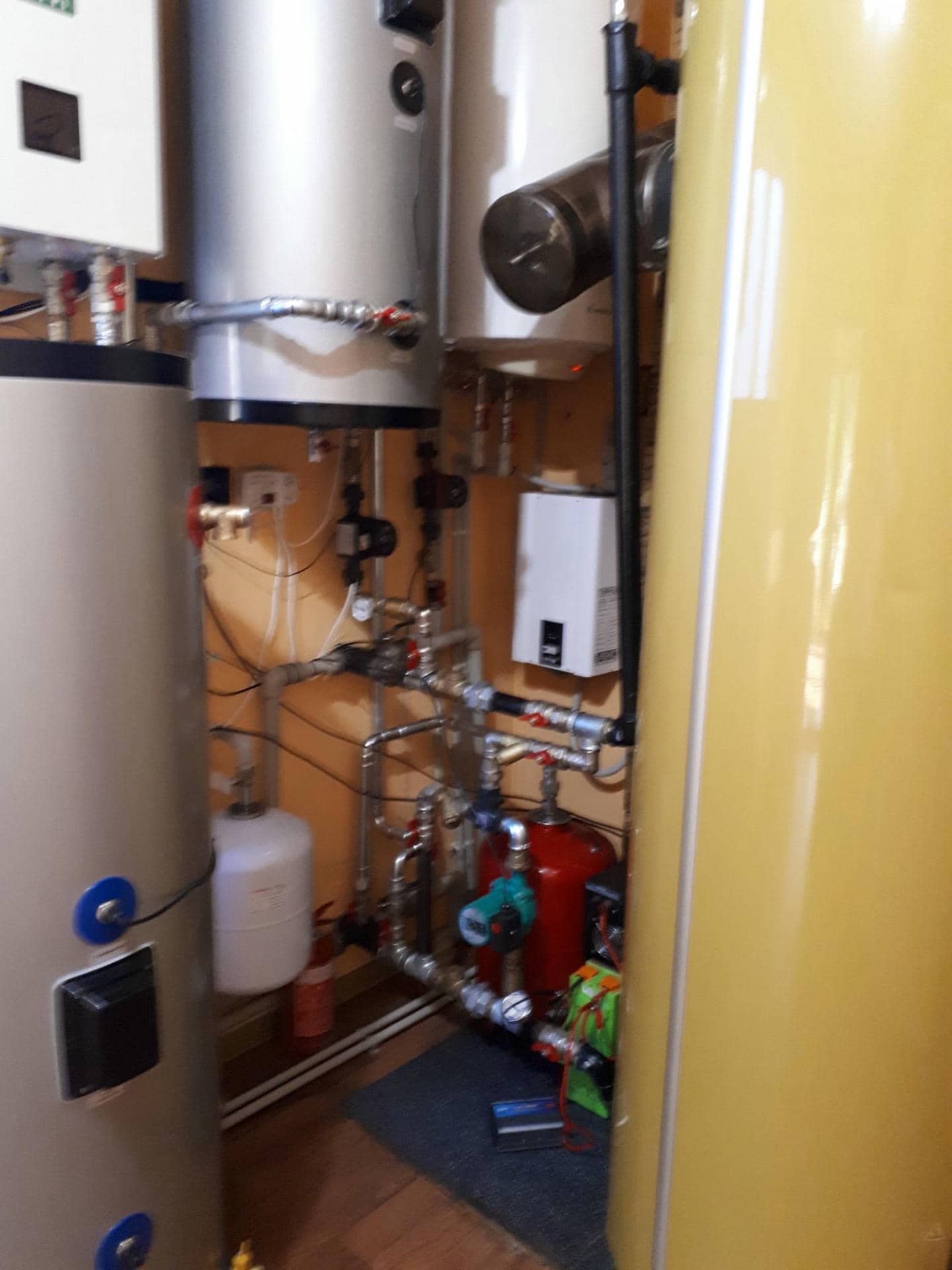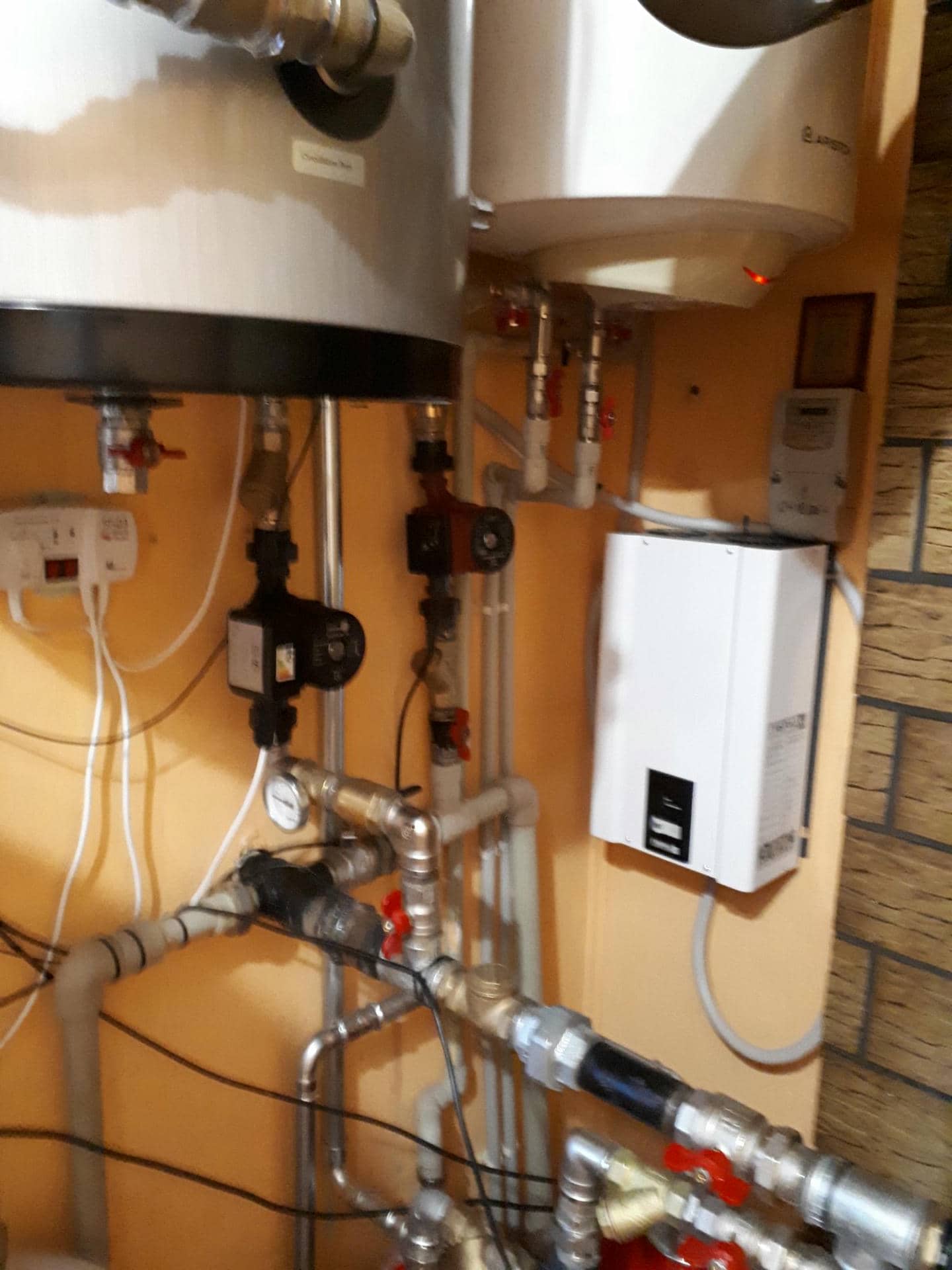 Крім того, для повної інтеграції насосу в існуючу систему опалення було вирішено встановити додаткові компоненти, такі як триходовий клапан, реле захисту та стабілізатор напруги, бак-накопичувач та бак непрямого нагріву для гарячого водопостачання.