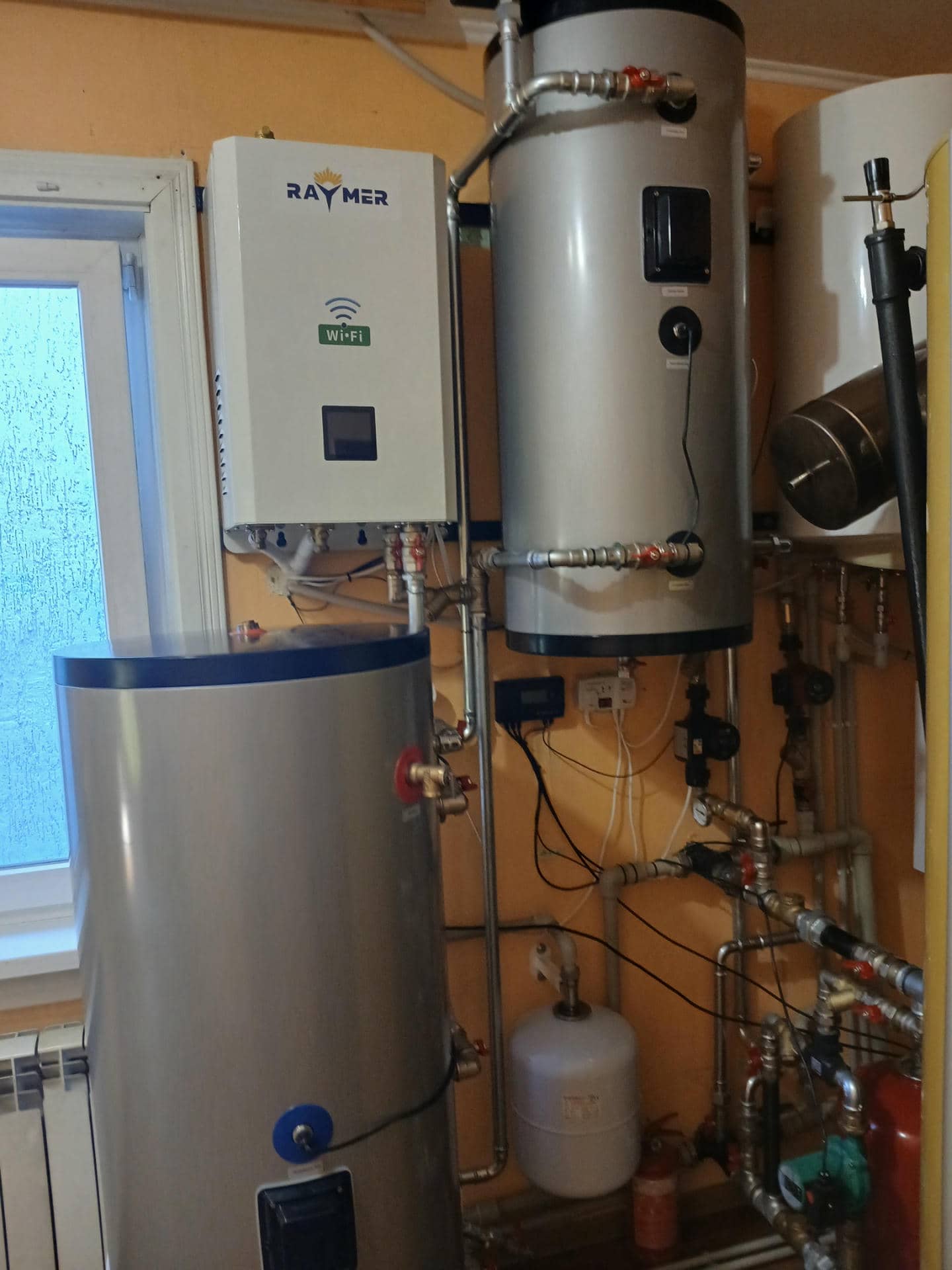 - Встановлено інверторний тепловий насос Raymer RAY-18DS1-EVI потужністю 18 кВт.
