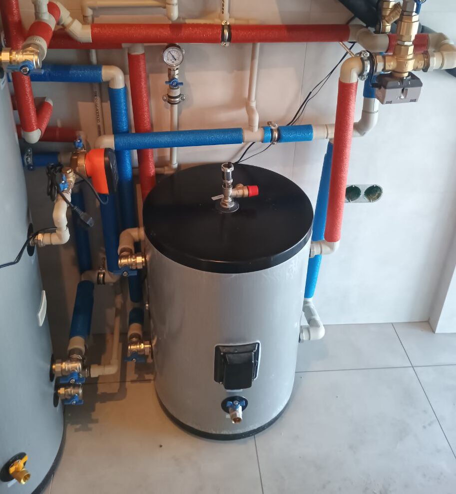 У систему теплового насоса було інтегровано два ключові елементи — бак-накопичувач Raymer IMP 60L та бак гарячого водопостачання Raymer DHWP 200L, які забезпечують стабільність роботи та комфорт у будинку.