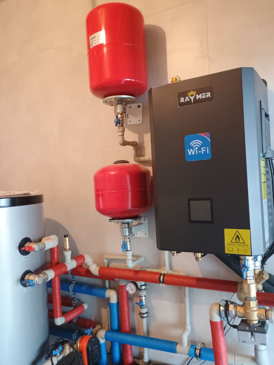 У котельні було змонтовано гідромодуль теплового насоса Raymer RAY-15DS2-EVI, який відповідає за управління роботою всієї системи опалення.