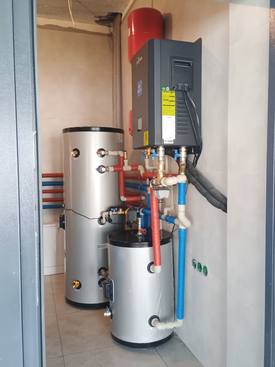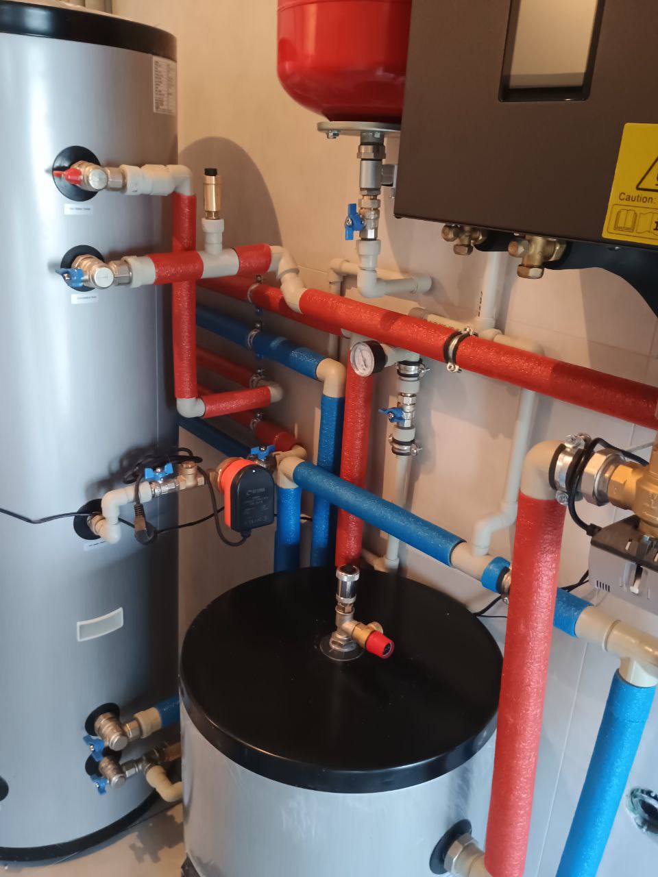 У систему теплового насоса було інтегровано два ключові елементи — бак-накопичувач Raymer IMP 60L та бак гарячого водопостачання Raymer DHWP 200L, які забезпечують стабільність роботи та комфорт у будинку.