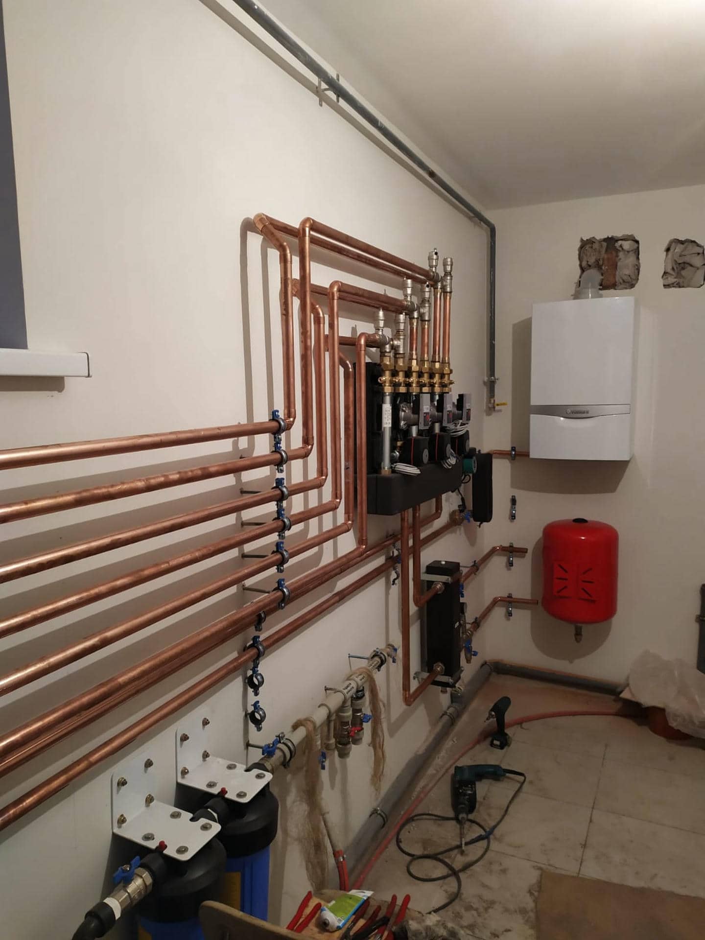 - Установка колектора і гідрострілки HERZ: Колектор і гідрострілка були встановлені для рівномірного розподілу тепла по радіаторах і оптимізації роботи системи.