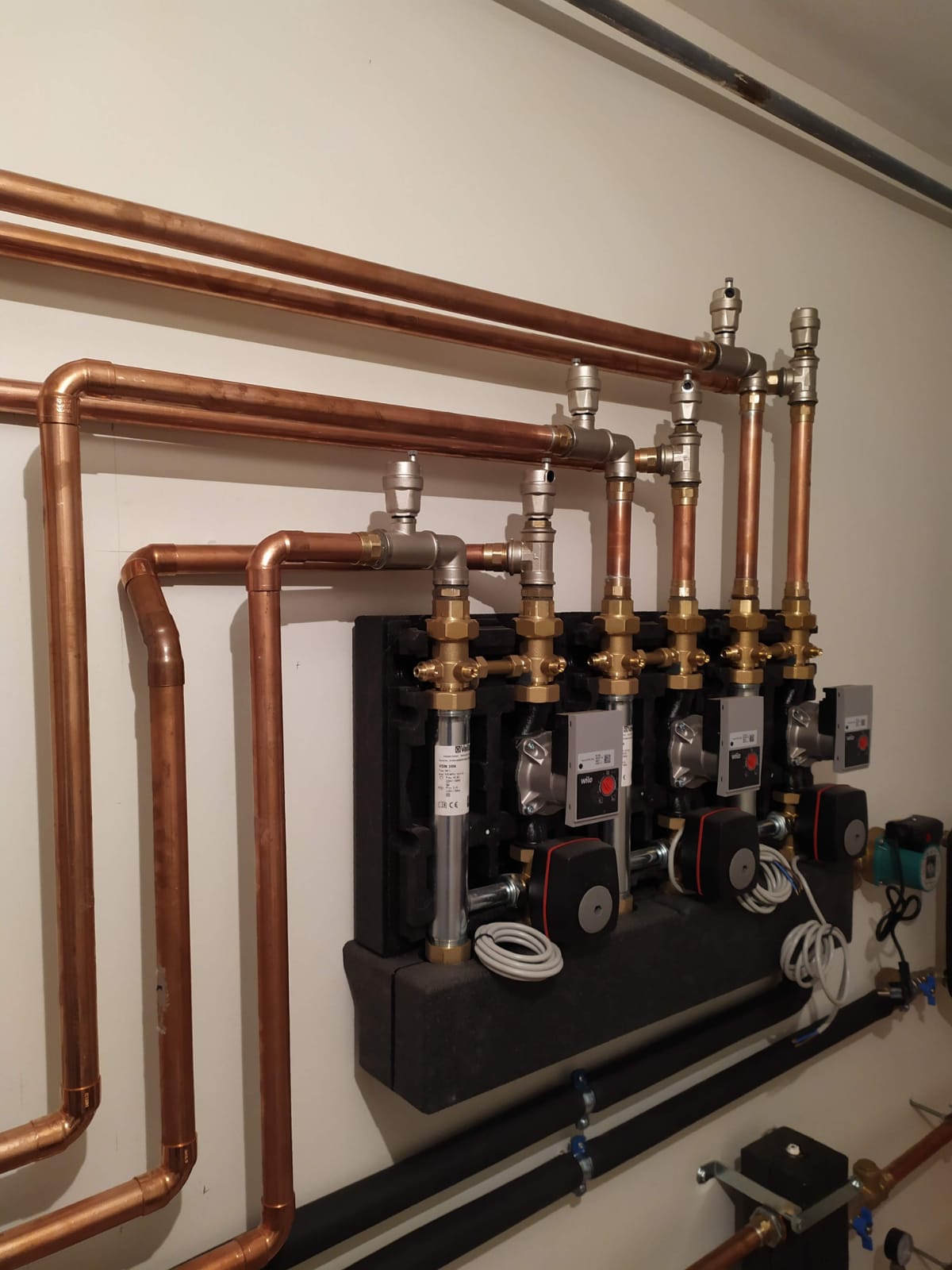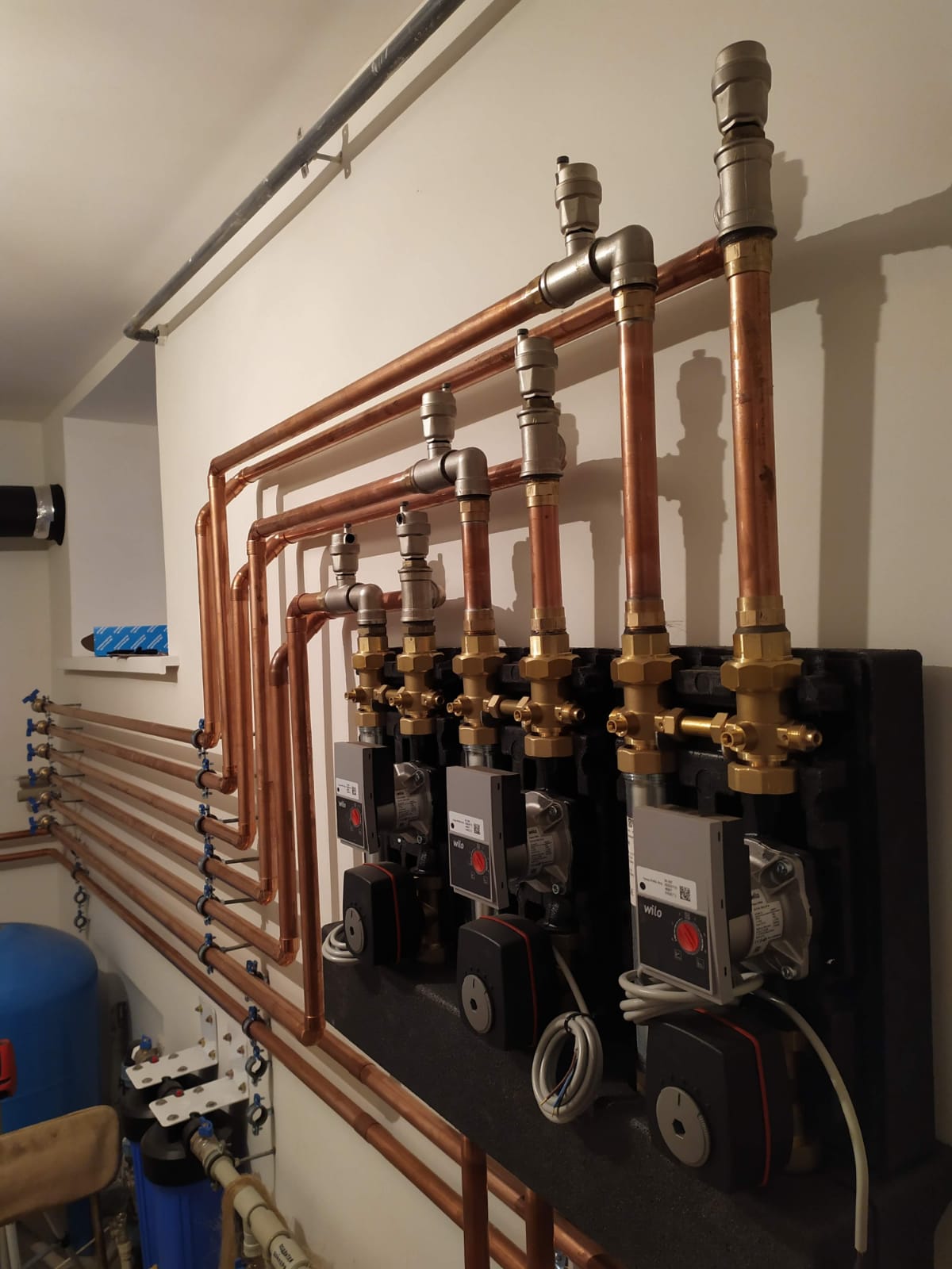 - Установка колектора і гідрострілки HERZ: Колектор і гідрострілка були встановлені для рівномірного розподілу тепла по радіаторах і оптимізації роботи системи.