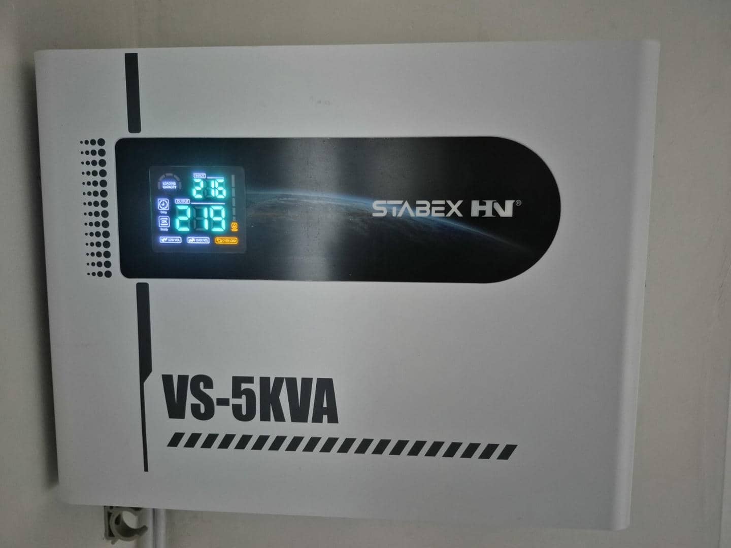 У зв’язку з можливими коливаннями напруги в електромережі, для захисту теплового насосу, електрокотла та іншого важливого обладнання було встановлено релейний стабілізатор напруги Stabex HN VS-5KVA.