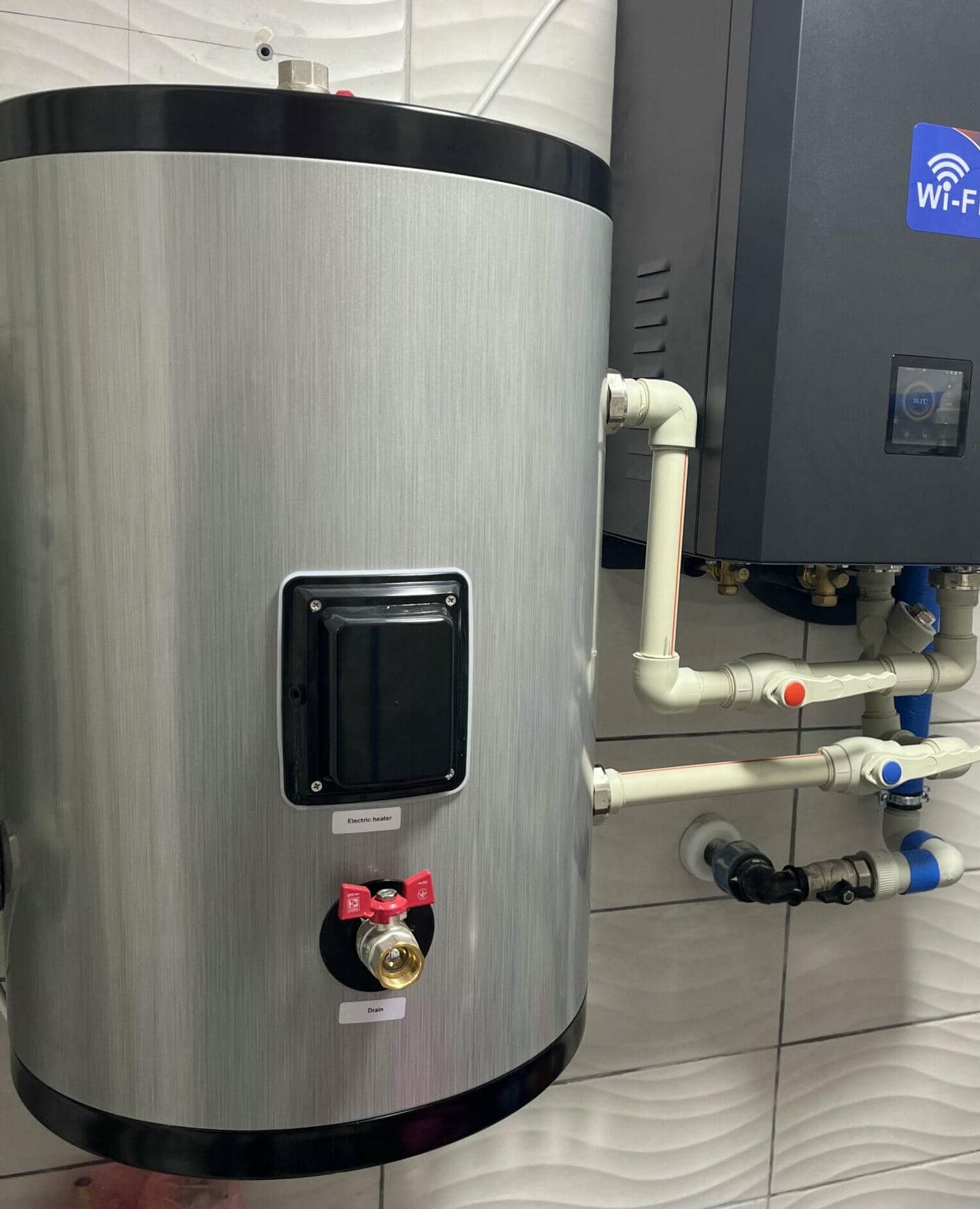 Також бак було з’єднано з електрокотлом, який зможе працювати в парі з баком у разі відключення ТН для технічних робіт.