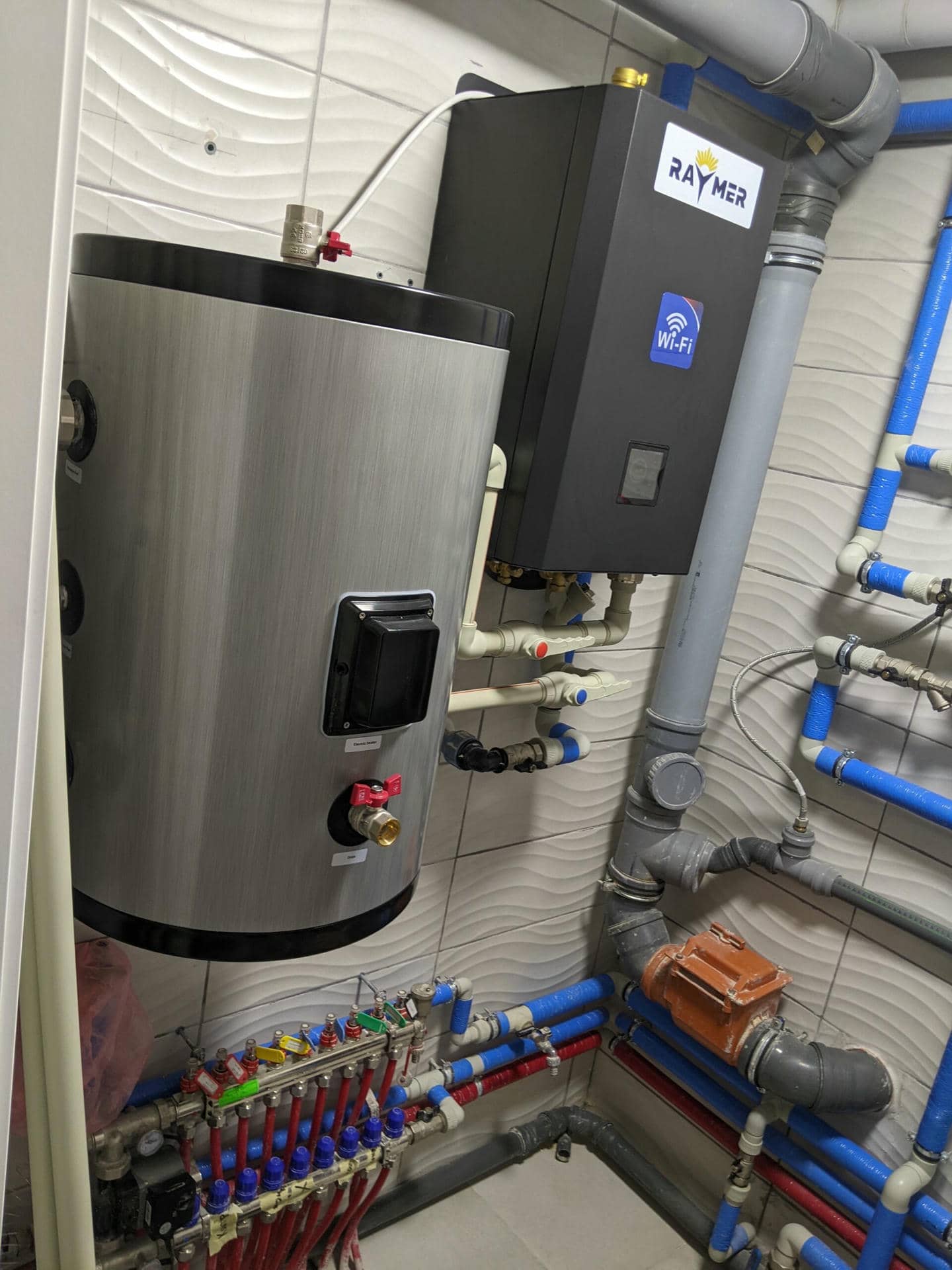На основі даних отриманих від клієнта (товщина утеплення, комунікацій опалення, розміщення радіаторів та котельні) було прийнято рішення встановити тепловий насос Raymer RAY-15DS2-EVI, якого буде цілком достатньо для опалення заданої площі.