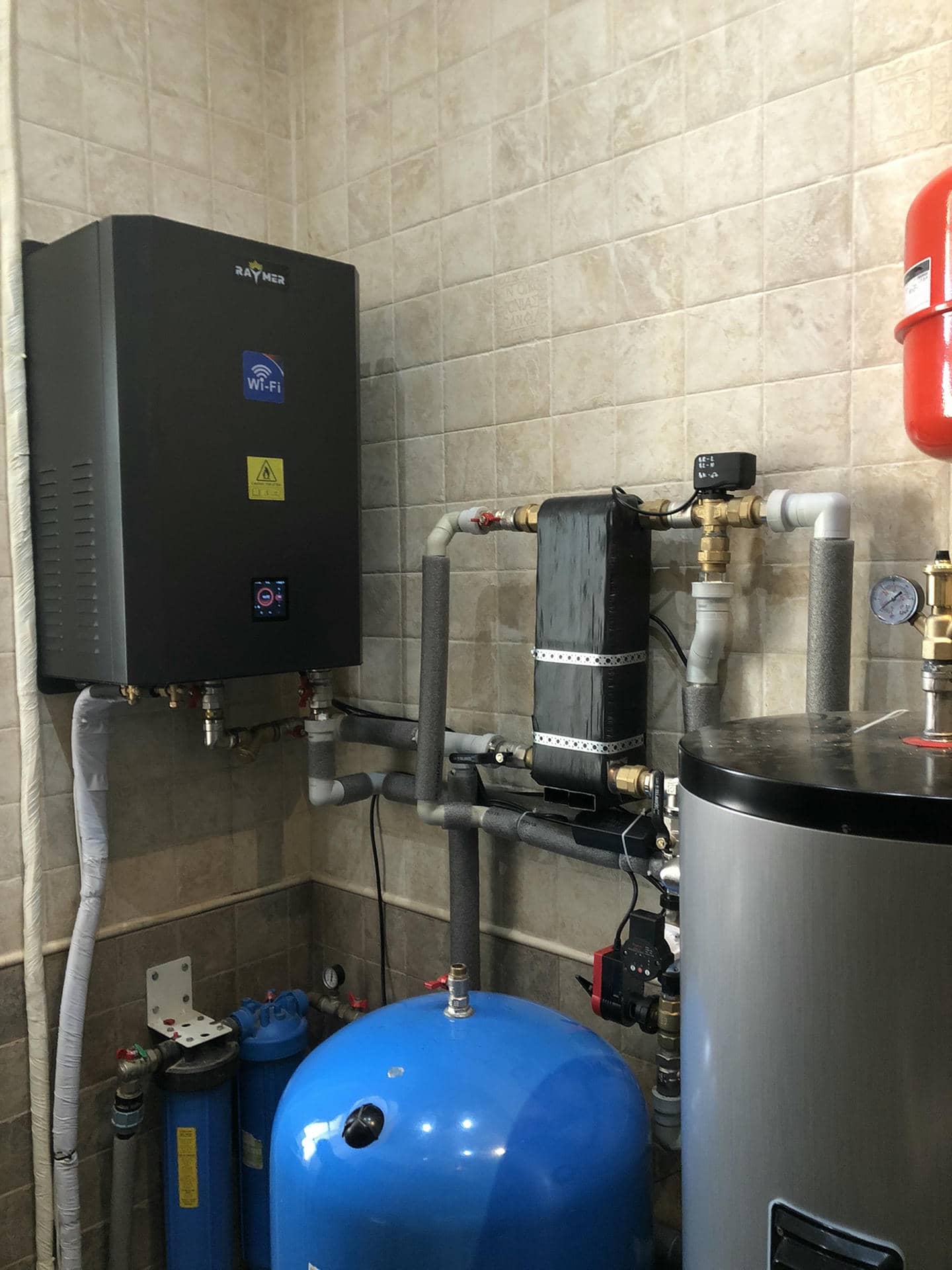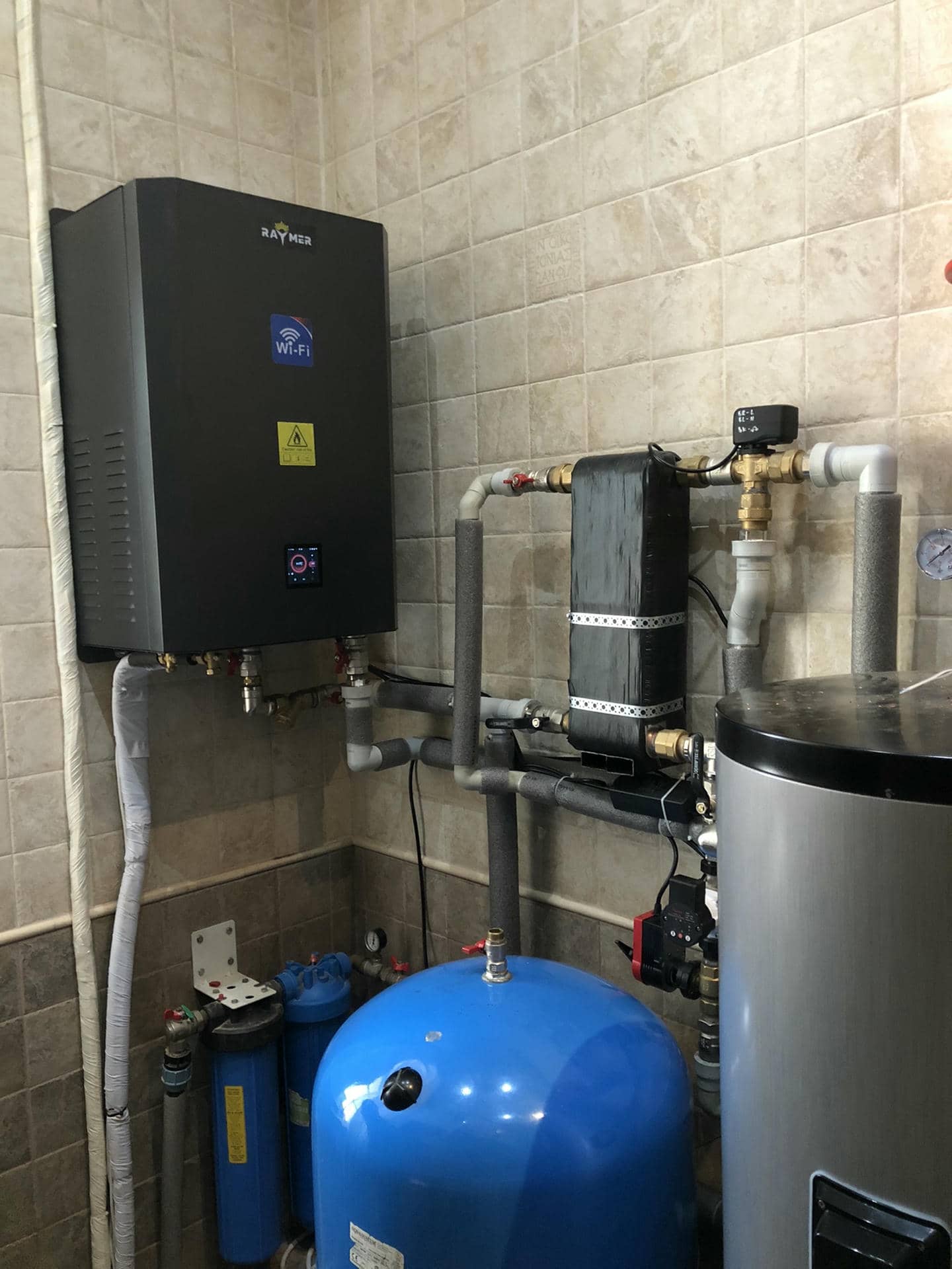 У цьому проєкті спеціалісти нашої компанії виконали монтаж додаткового пластинчастого теплообмінника, який було інтегровано між гідромодулем теплового насосу Raymer та бойлером непрямого нагріву.