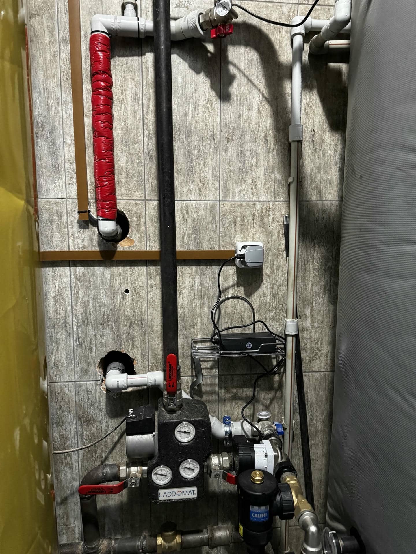 У процесі монтажу особливу увагу було приділено якісній ізоляції всіх трубопровідних з’єднань, що підключають моноблок Raymer RAY-10MN2 до системи опалення. Для цього використано високоякісні теплоізоляційні матеріали, що дозволяють мінімізувати тепловтрати під час циркуляції теплоносія. Ізоляція нанесена на всю довжину труб, що проходять від зовнішнього блоку до буферної ємності, забезпечуючи максимальну ефективність передачі тепла.