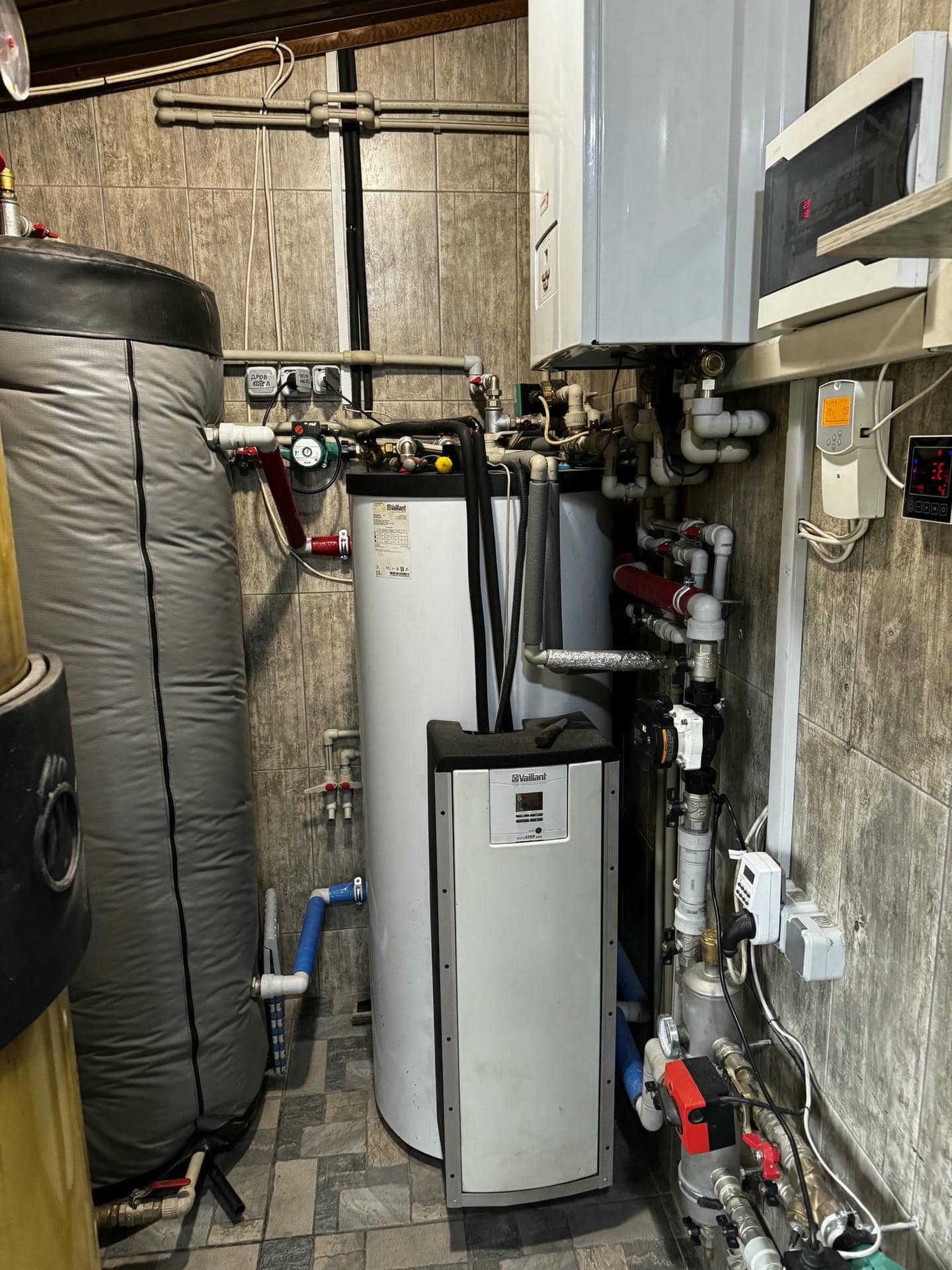 Модернізація системи опалення в будинку площею 100 кв.м, що раніше працювала на основі електричного котла. У попередній системі вже була встановлена буферна ємність об’ємом 200 літрів, а гаряче водопостачання забезпечувалось баком непрямого нагріву Vaillant. Основна мета модернізації – зниження витрат на опалення та підвищення енергоефективності за рахунок встановлення теплового насоса.