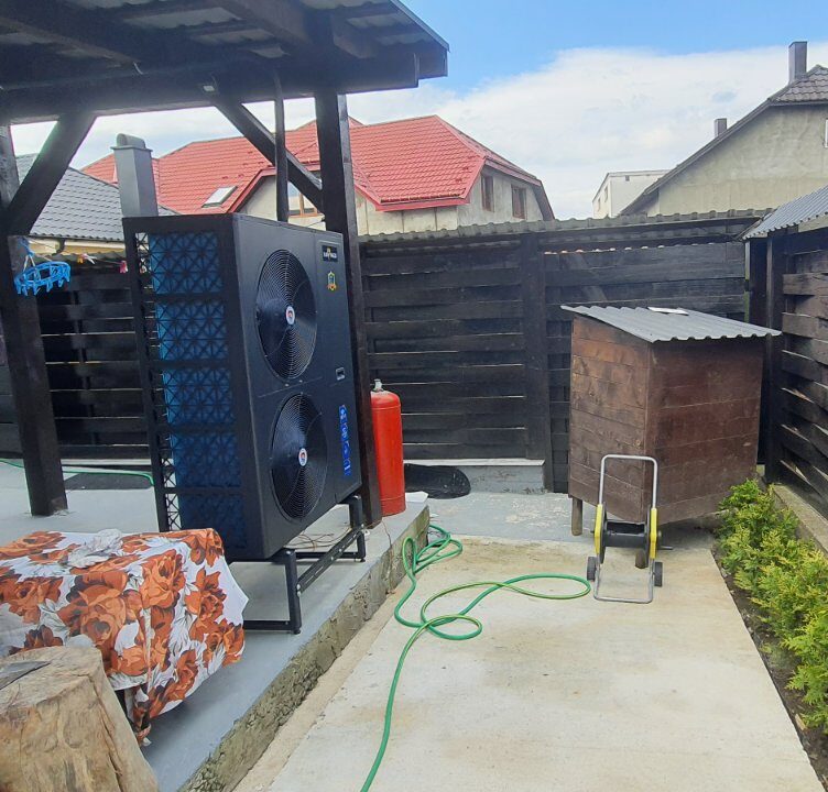 Додатково було виконано ряд удосконалень, спрямованих на підвищення надійності та ефективності роботи теплового насоса. Зокрема, на опори встановлено антивібраційні підставки, які значно знизили рівень шуму та вібрацій під час роботи, забезпечуючи комфортну експлуатацію. Всі електричні дроти, включаючи помаранчевий кабель, були надійно ізольовані у спеціальні гофровані рукави, що захищають їх від механічних пошкоджень та впливу навколишнього середовища. Також організовано якісну систему відведення конденсату, яка забезпечує стабільний відтік води навіть у зимовий період, запобігаючи утворенню льоду під блоком. Для підвищення захисту від можливих снігових заметів зовнішній блок піднято на оптимальну висоту, що повністю відповідає рекомендаціям для регіонів зі сніжними зимами.