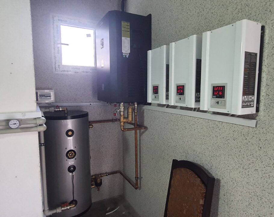 Встановлення трьох стабілізаторів напруги Елекс Ампер У 12-1/25 V2.1 по одній одиниці на кожну фазу забезпечує надійний захист теплового насоса та всіх підключених компонентів від стрибків напруги та перенапруг у мережі. Це рішення дозволяє підтримувати стабільні параметри живлення, що є критично важливим для коректної та тривалої роботи обладнання. Завдяки високій швидкості реагування стабілізаторів, електроніка та компресор теплового насоса працюють у штатному режимі навіть при різких коливаннях напруги, що підвищує ефективність роботи системи та запобігає можливим поломкам. Також використання трьох окремих стабілізаторів на кожну фазу дозволяє рівномірно розподілити навантаження та забезпечити максимальну ефективність роботи всіх вузлів опалювальної системи.