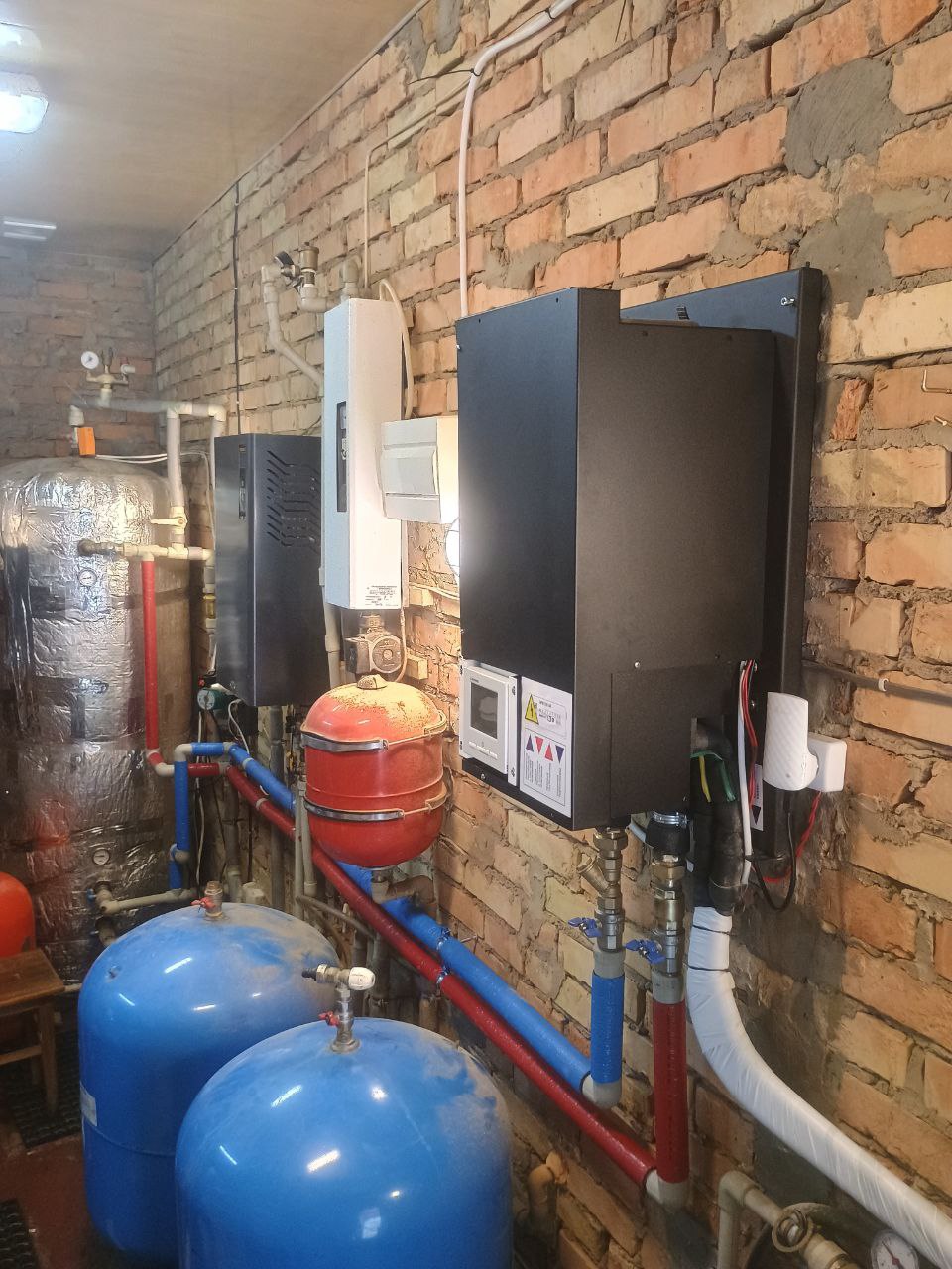 • У разі потреби або підвищеного навантаження, електрокотел може підключатися для додаткового підігріву, забезпечуючи резервне джерело тепла.