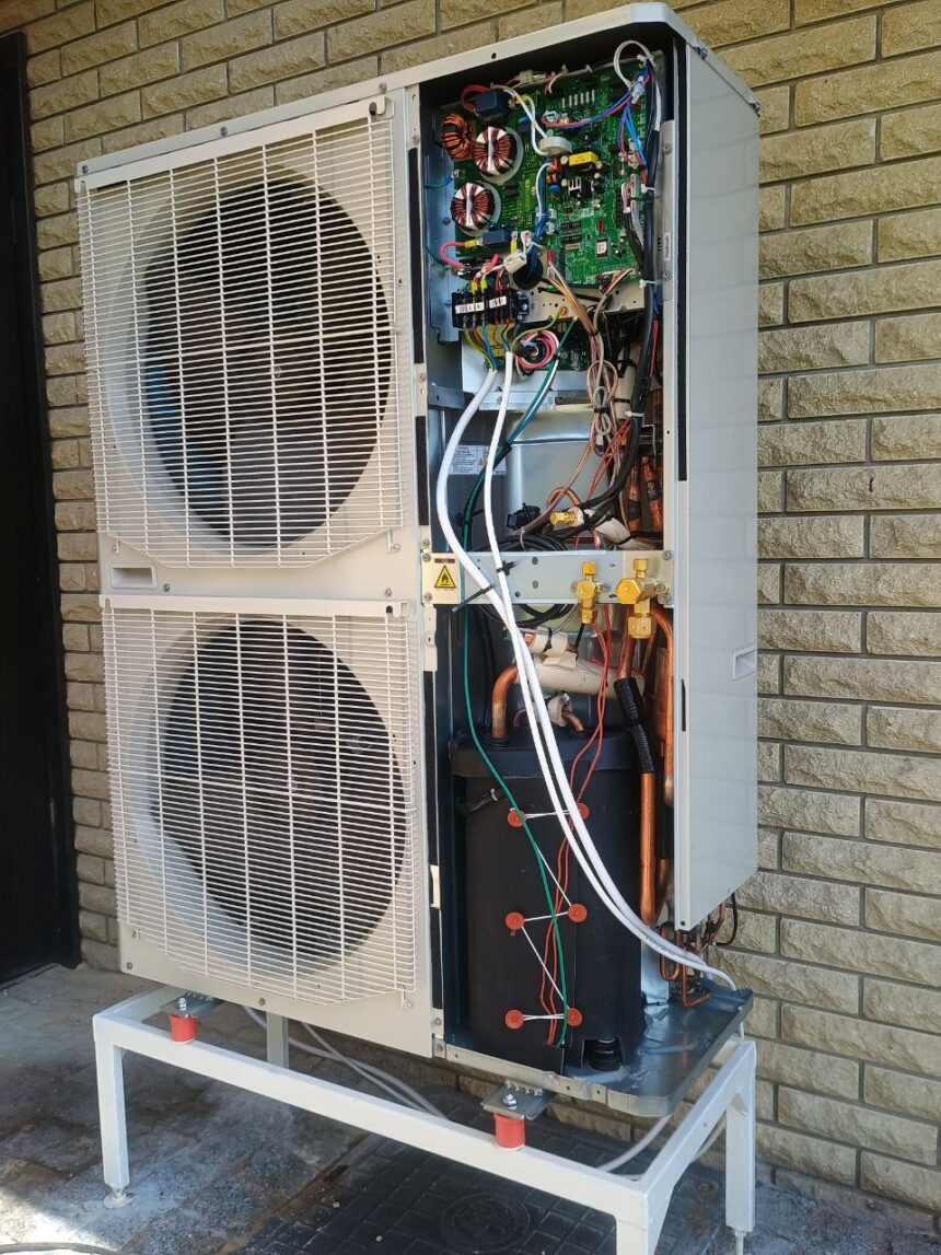 Враховуючи особливості будинку (утеплення та місцевий клімат), потреби клієнта, було прийнято рішення встановити інверторний тепловий насос Mitsubishi HeatGuard 110NX HPC110VNX/HPM 110-160. Цей насос відзначається високою продуктивністю і стабільністю роботи навіть до -25°C, що важливо для кліматичних умов півночі України.