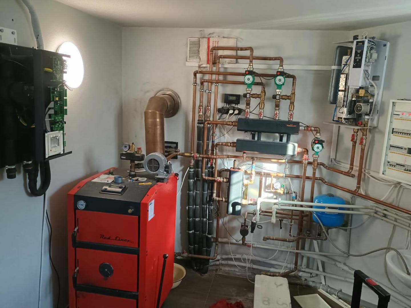 Система була зібрана з використанням мідних трубопроводів, які вирізняються своєю міцністю та довговічністю. Усі з’єднання виконані з точністю — акуратно, міцно та з урахуванням майбутнього зручного обслуговування.