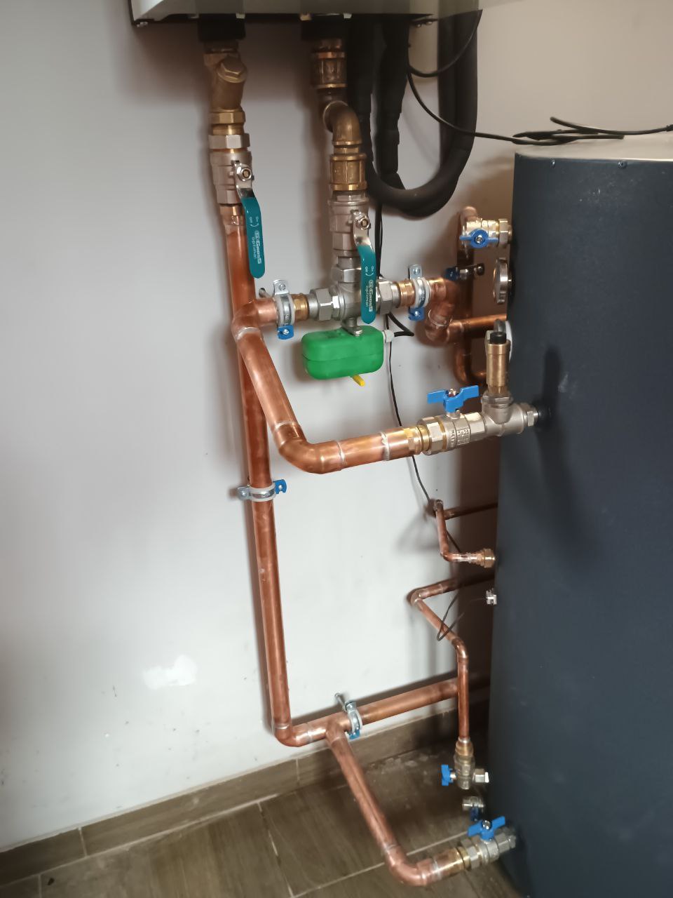 Система була зібрана з використанням мідних трубопроводів, які вирізняються своєю міцністю та довговічністю. Усі з’єднання виконані з точністю — акуратно, міцно та з урахуванням майбутнього зручного обслуговування.