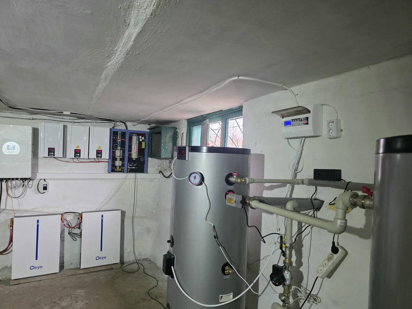 Результат: Інтеграція системи теплового насоса з сонячними інверторами та стабілізаторами забезпечує повну енергонезалежність об’єкта, максимальну ефективність опалення та гарячого водопостачання без додаткових витрат на електроенергію.