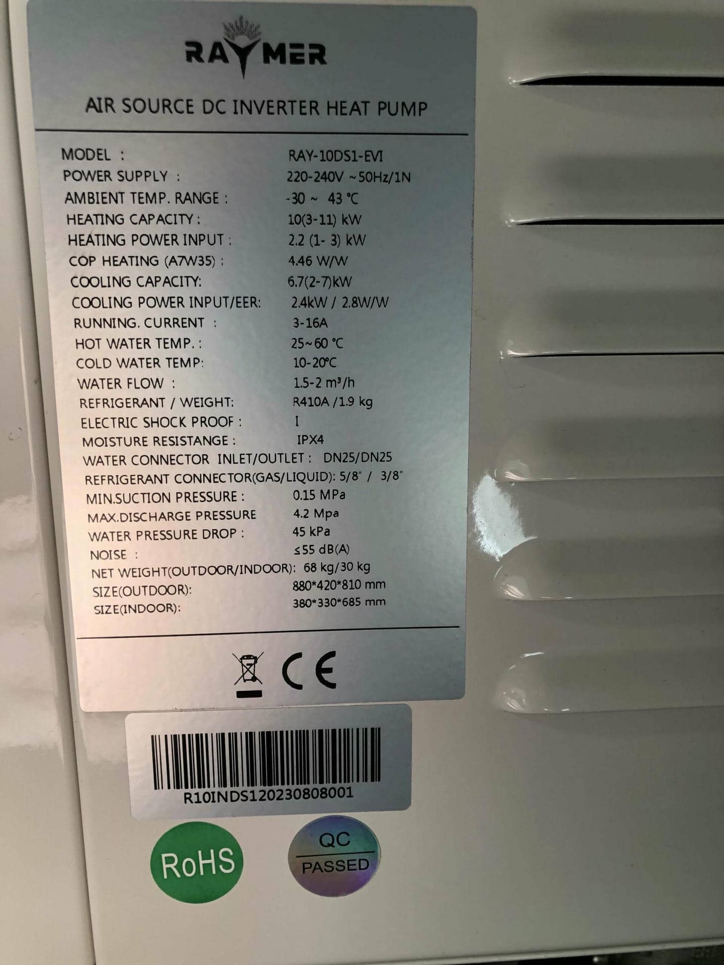 Основні характеристики теплового насоса Raymer RAY-10DS1-EVI