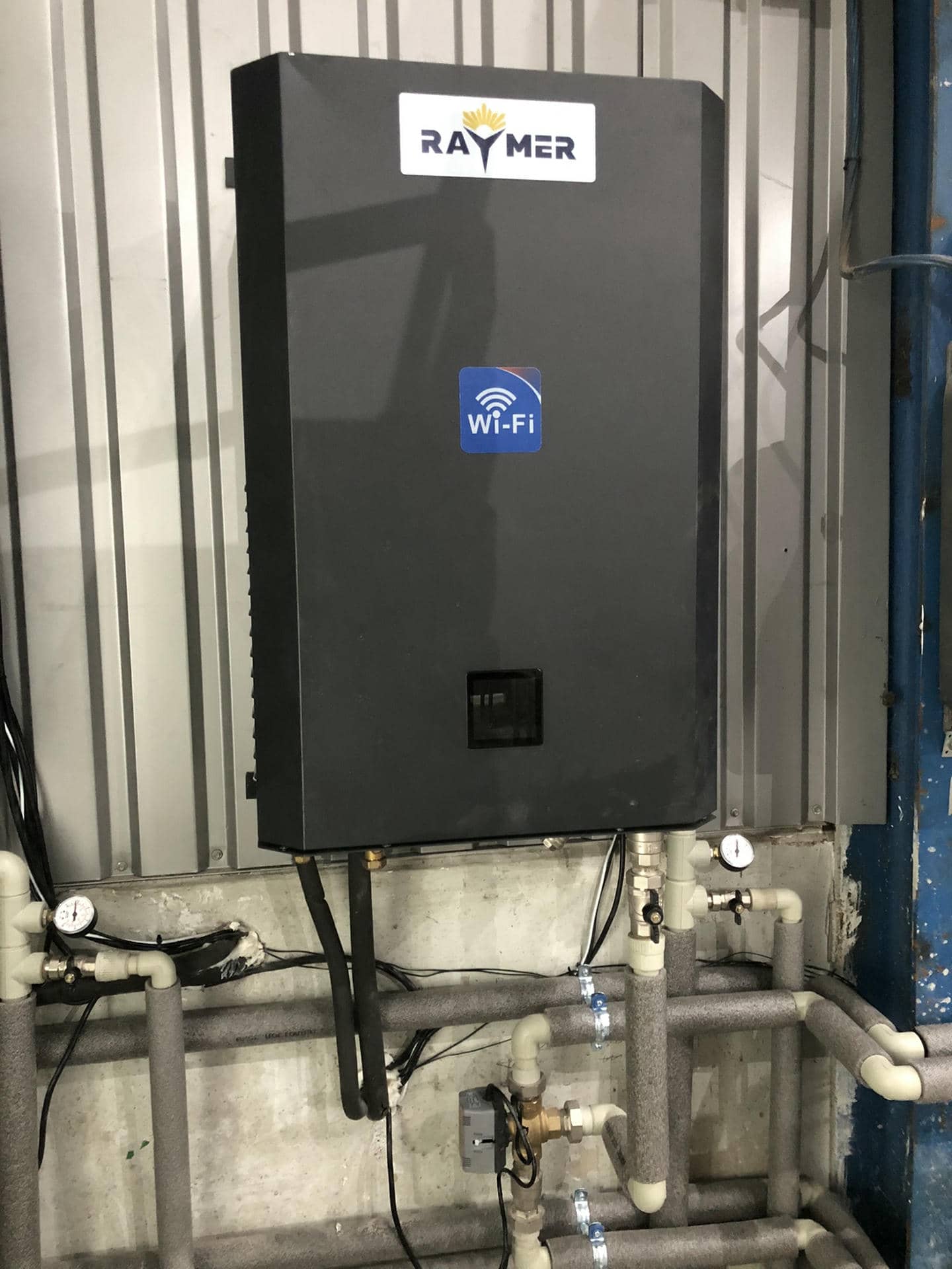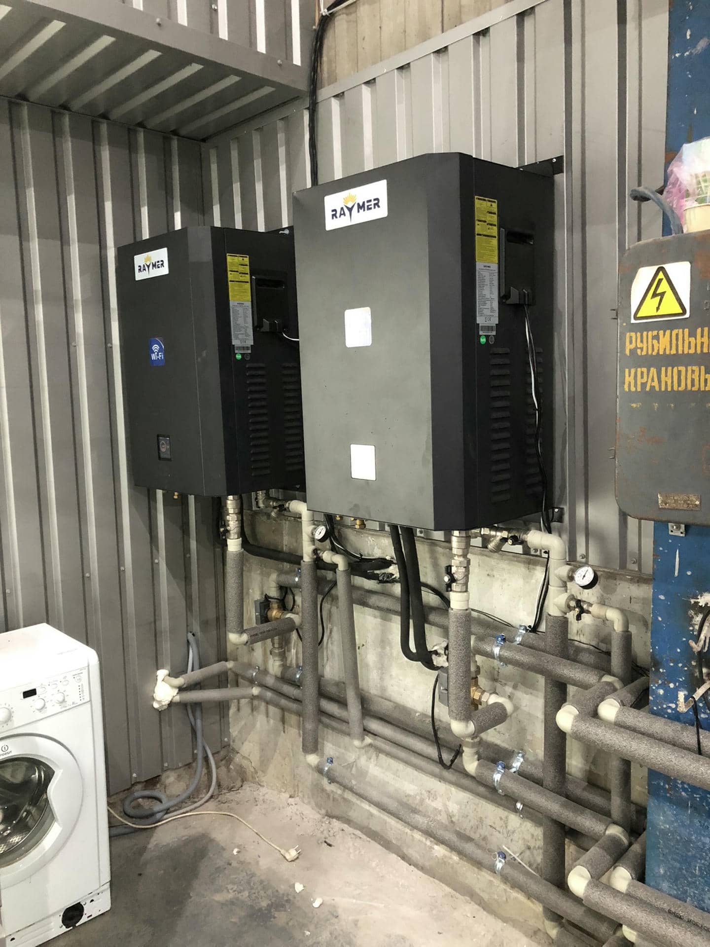 Для реалізації проекту було обрано каскадну схему монтажу двох теплових насосів Raymer RAY-24DS2-EVI (380V) black. Ця модель забезпечує високу енергоефективність та стабільну роботу навіть при низьких температурах, що критично важливо для великого виробничого приміщення.