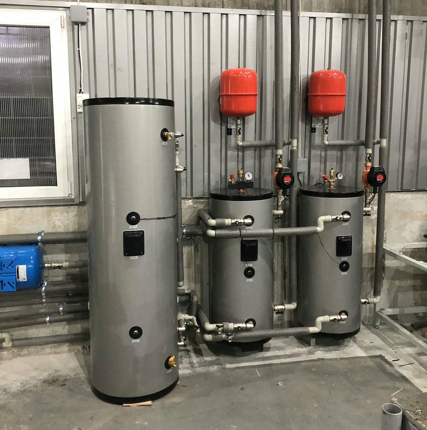 • Бак непрямого нагріву (нержавіючий) Raymer DHWP 300L, який забезпечує ефективне підігрівання води від теплових насосів.