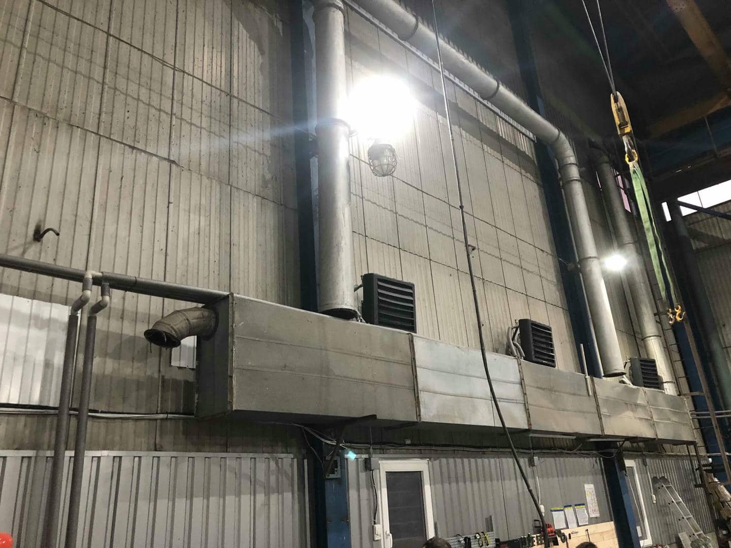 Для ефективного розподілу тепла у виробничому приміщенні було використано комплект повітряно-опалювального приладу HC45-3S із поворотним кронштейном та трьохступінчастим регулятором швидкості вентилятора.