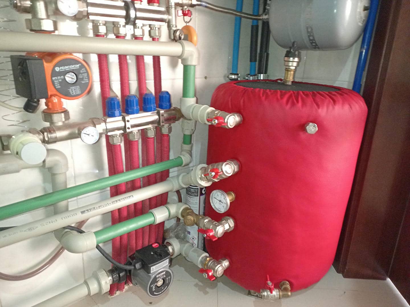 Так, як опалення будинку працює на основі водяної теплої підлоги, просто необхідно встановити буферний бак для акумуляції та зберігання теплоносія в системі.