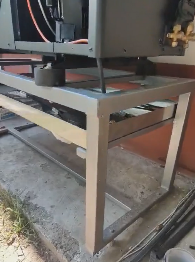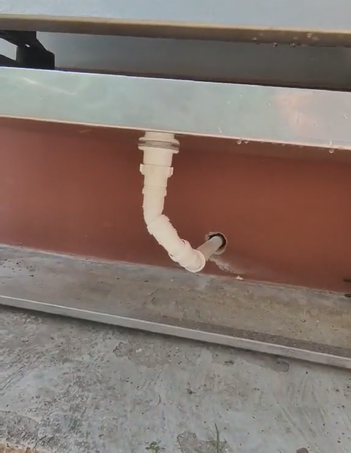 Блок встановлений на металевій підставці з кабелем підігріву, що забезпечує швидке та безпечне розморожування під час зимових морозів. Для відведення конденсату організовано підключення труби безпосередньо в каналізацію, що виключає утворення льодових наростів навколо обладнання.