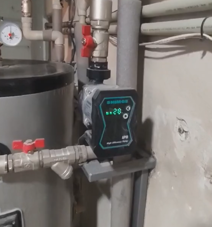 Окремо було встановлено інверторний циркуляційний насос, який під’єднано до буферної ємності. Його головна перевага полягає у можливості автоматично регулювати швидкість обертання залежно від потреб системи. Завдяки цьому відбувається оптимізація споживання електроенергії, а також підтримується стабільний гідравлічний баланс навіть при змінному навантаженні.