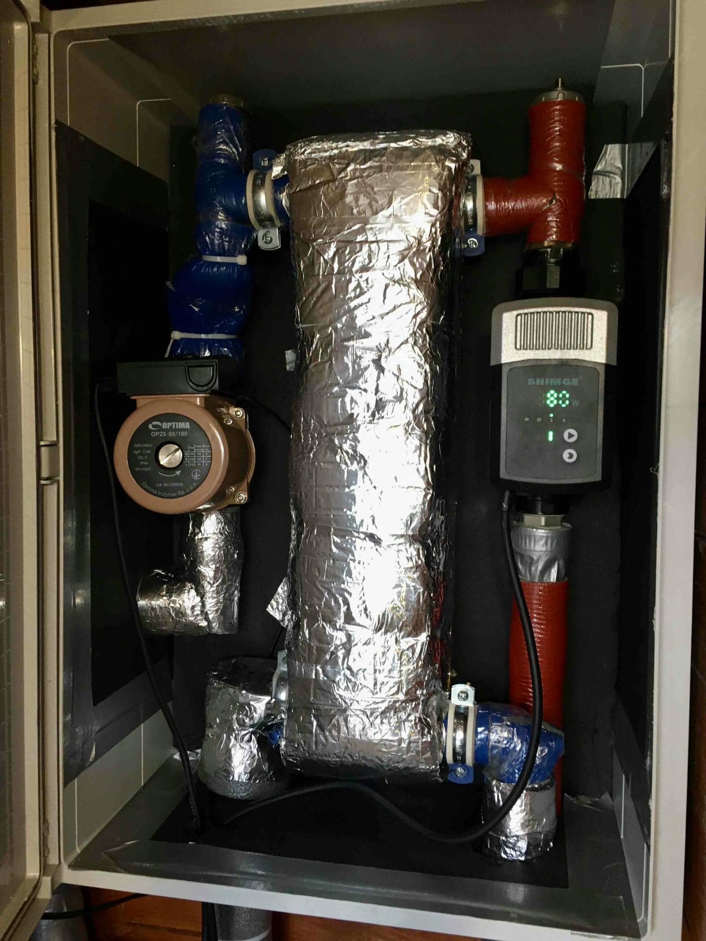 Так, як дана система працює на спиртовому розчині в якості теплоносія з вулиці та води в середині будинку, було прийнято рішення встановити додатково розширений паяний теплообмінник Raymer B3-050-40 на 2,5 м.кв для розподілу рідин в системі.