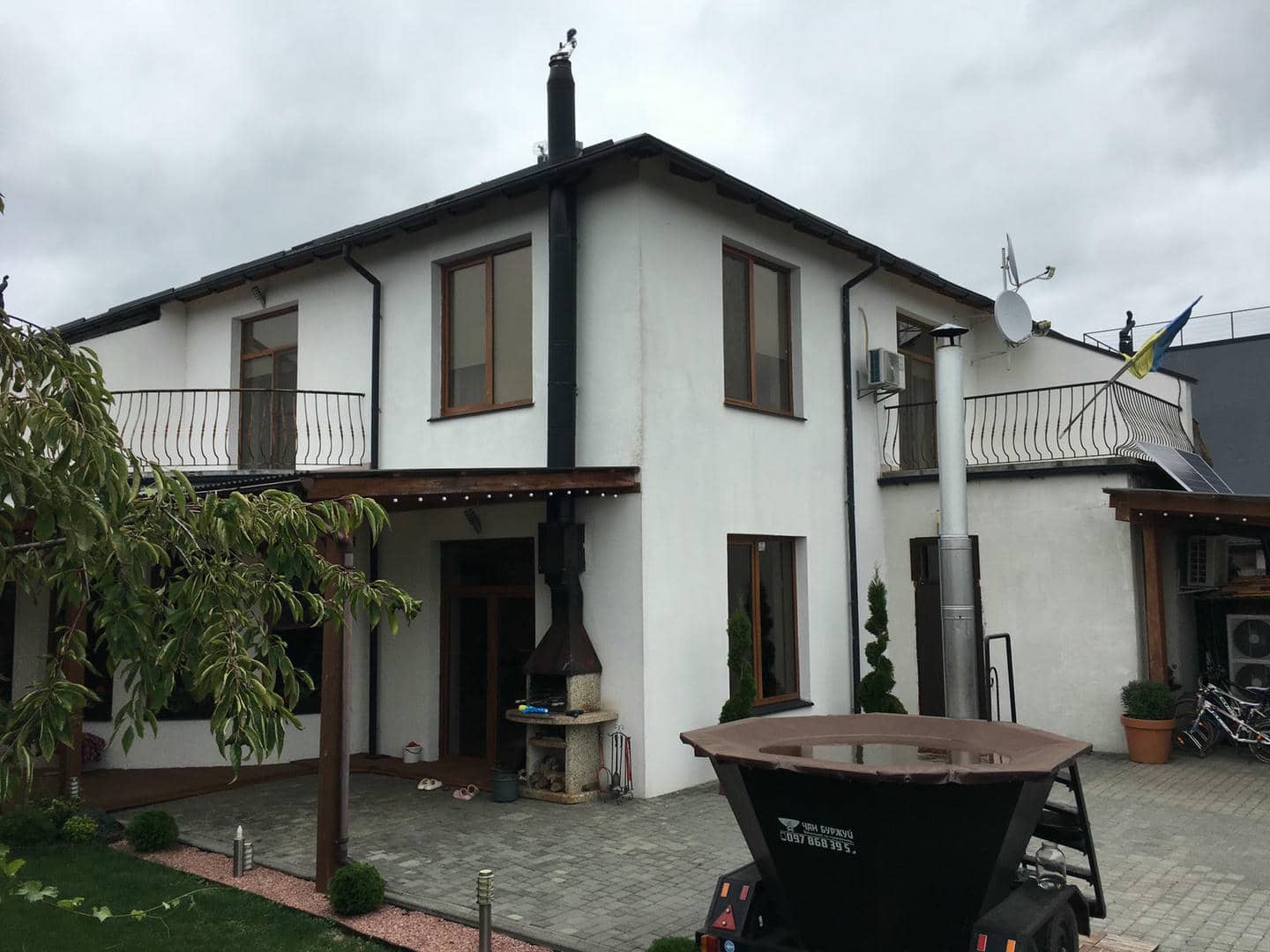 Зовнішній блок теплового насоса був встановлений на надійному фундаменті, який забезпечує стійкість та захист від впливу навколишнього середовища. Було враховано розташування зовнішнього блоку для забезпечення оптимального функціонування та зручності обслуговування.