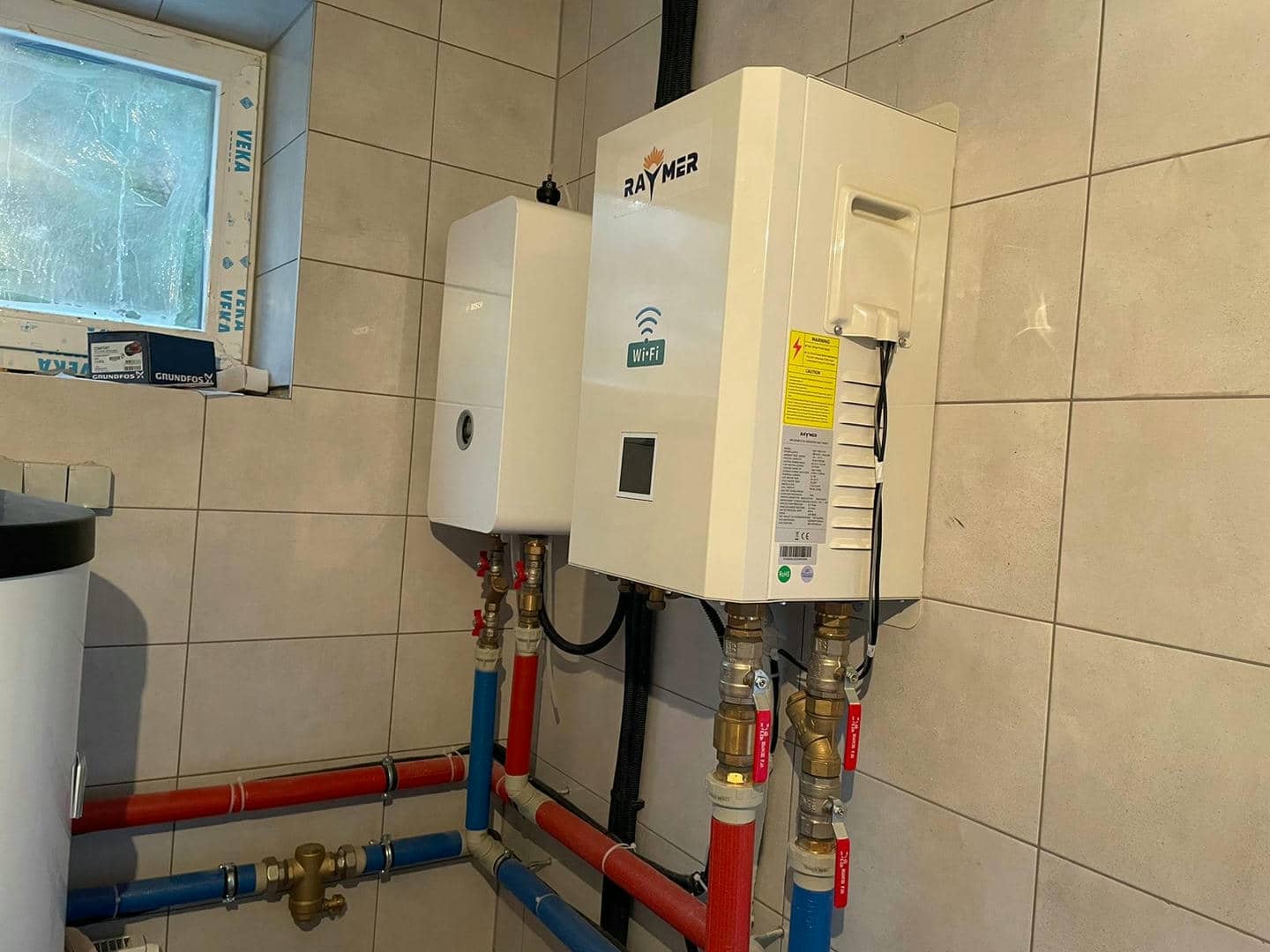 Установка буферного бака Raymer IMP 100 на 100 літрів та бойлера непрямого нагріву Raymer DHWP 300 л була важливою частиною рішення. Це дозволило забезпечити необхідний запас теплої води та ефективно розподілити тепло по всьому будинку.