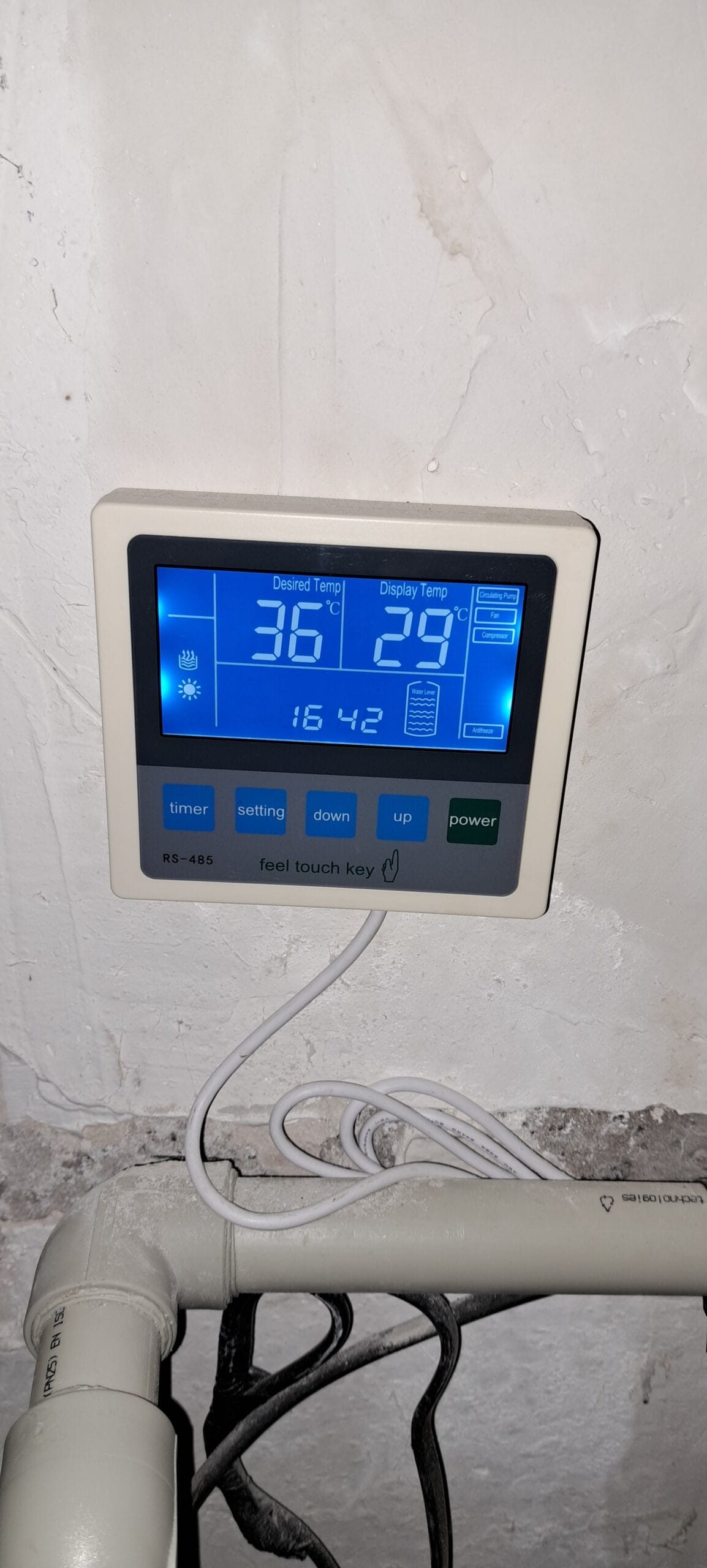 - Інтеграція з існуючою системою опалення: Тепловий насос був успішно інтегрований у систему опалення будинку, включаючи теплу підлогу на першому поверсі та радіатори на другому та третьому. До системи було додано спиртовий розчин для підвищення ефективності.