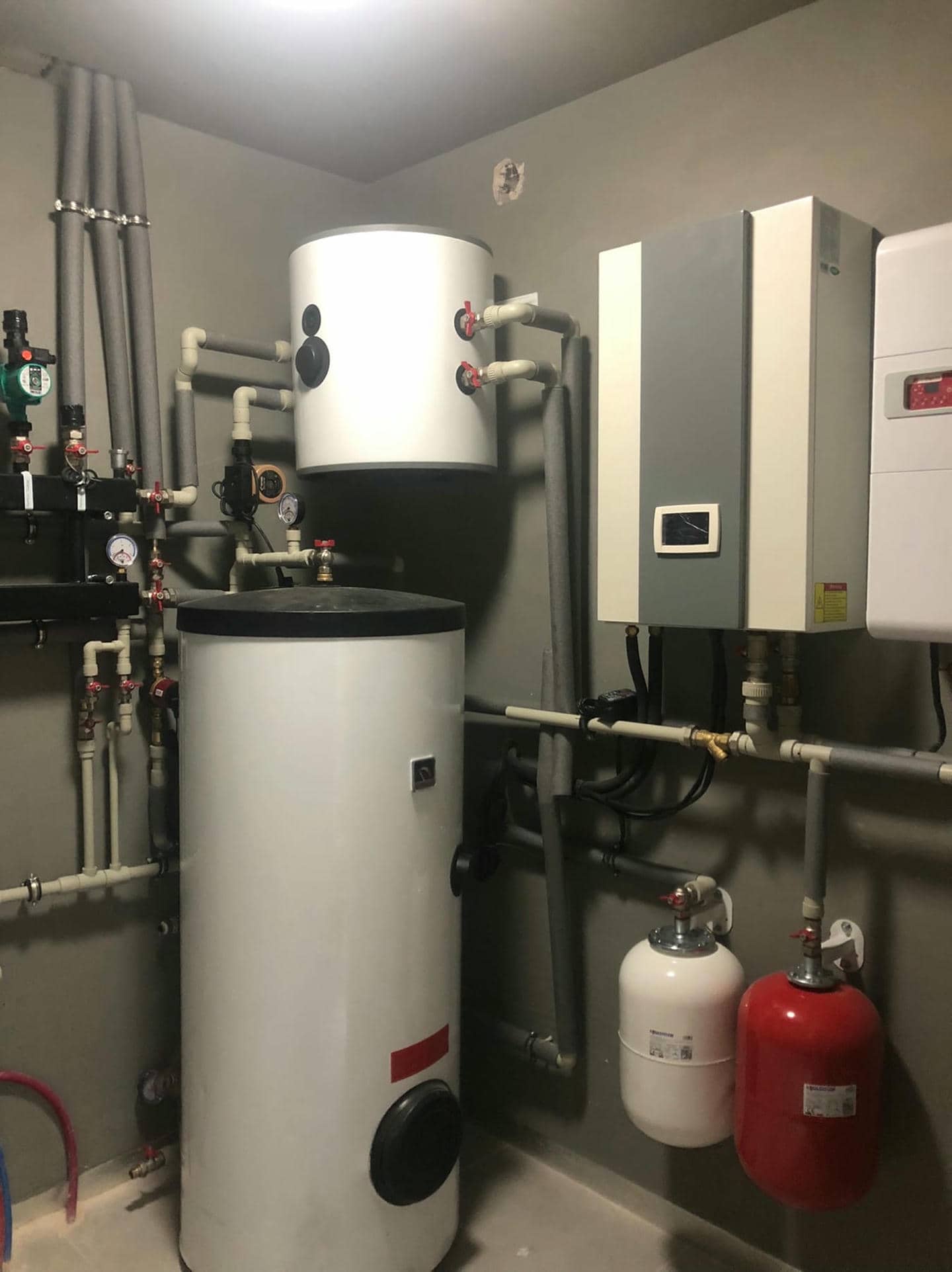 Вибір впав на тепловой насос Raymer RAY-13DS1 на 13 кВт завдяки його високій енергоефективності та здатності забезпечувати як опалення будинку, так і нагрівання води. Для оптимізації роботи системи та підвищення її ефективності було встановлено буферний бак об’ємом 60 літрів та бак непрямого нагріву (котел) на 250 літрів.