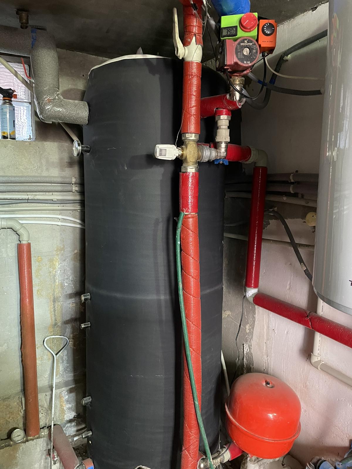 Була підключена буферна ємність на 500 літрів, яка відіграє важливу роль у системі опалення. Вона дозволяє накопичувати надлишки тепла та використовувати їх у міру необхідності, що підвищує ефективність системи та забезпечує рівномірне опалення.
