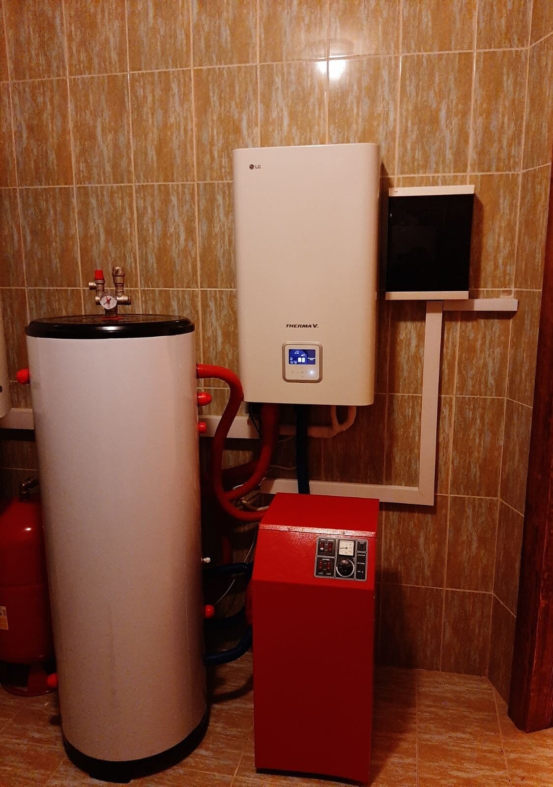 - Підбір та встановлення теплового насоса: Здійснення вибору та придбання теплового насоса LG Therma V Series IV – HU163MA.U33/HN1639.NK3, що відповідає необхідним характеристикам і потужності. Встановлення насоса згідно з інструкцією виробника, включно з підключенням до електрики і перевіркою його роботи.